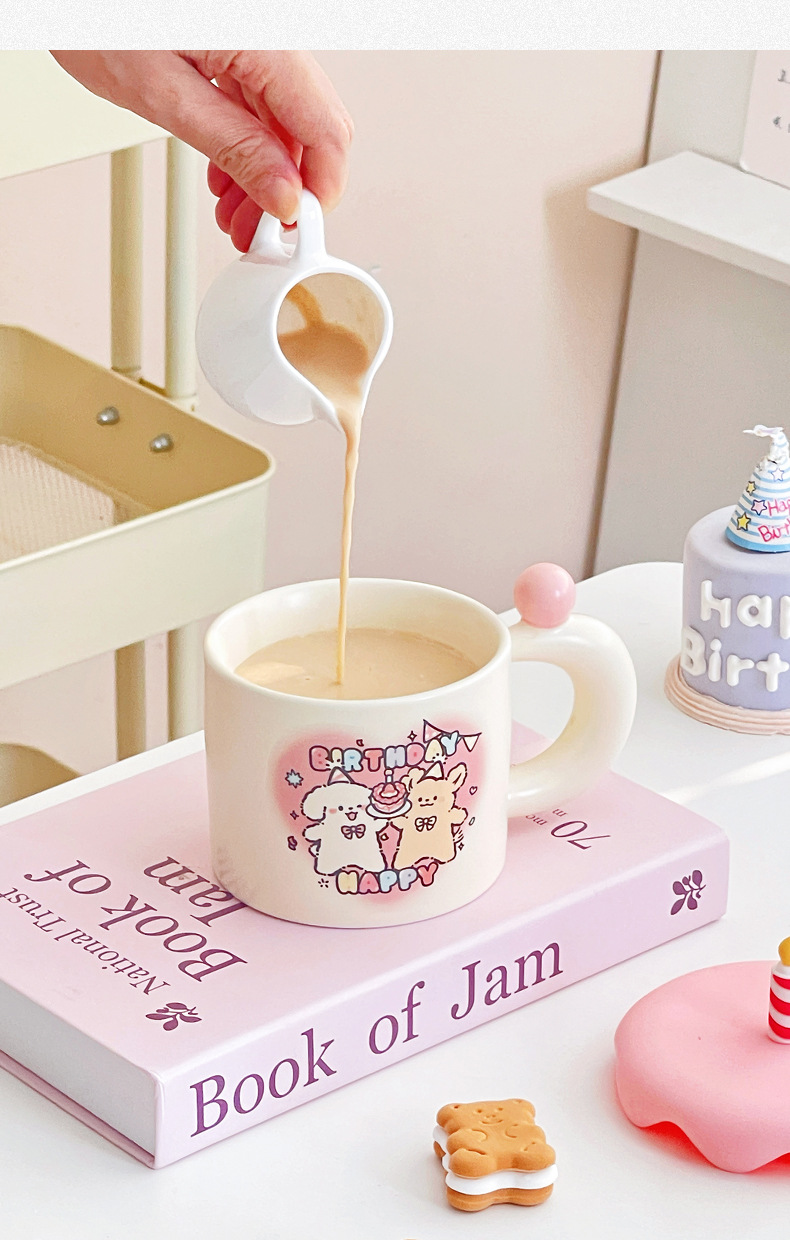 かわいい誕生日子犬マグカップ家庭用カップルカップ高颜値陶磁器カップコーヒーカップ誕生日プレゼント女
