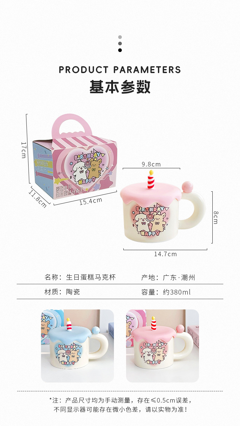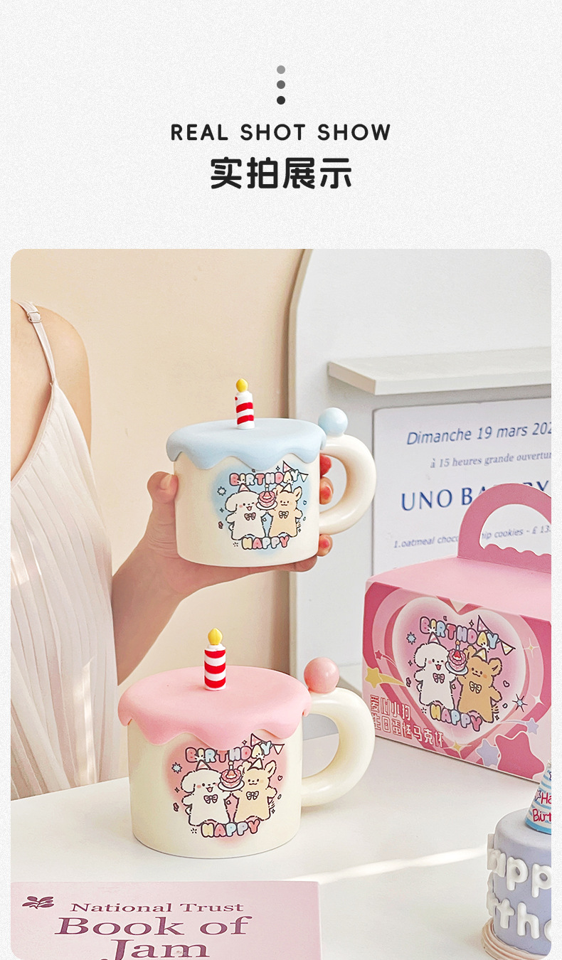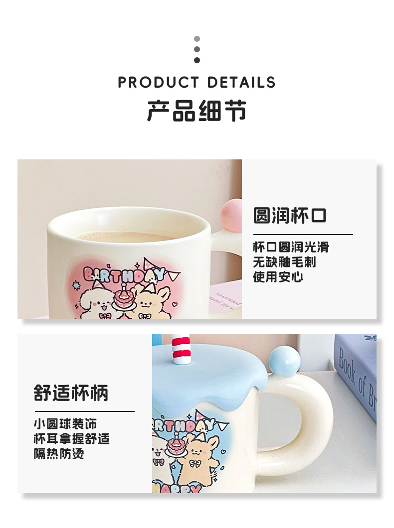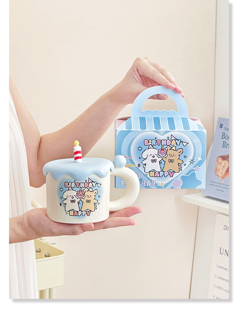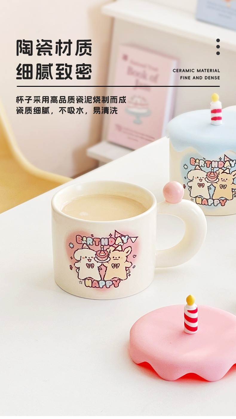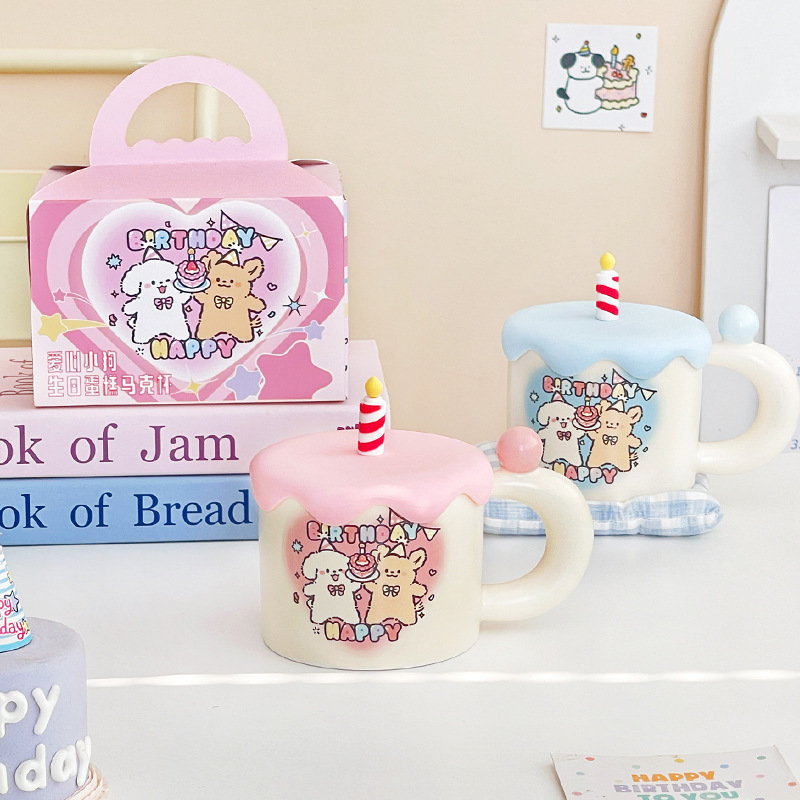 可爱卡通生日蛋糕小狗情侣陶瓷杯马克杯咖啡下午茶水杯子伴手礼物