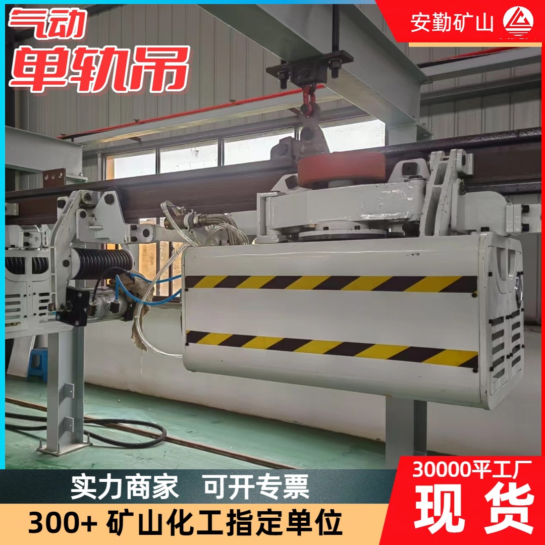 通过压缩空气驱动气动马达,带动齿轮或链条传动系统,实现重物的升降和移动。