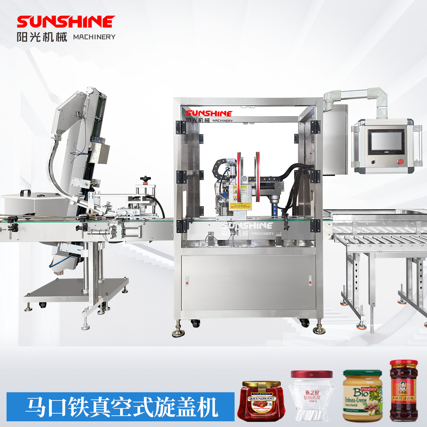 全自動二頭ガラス瓶真空回転蓋封口機ソースカレー唐辛子ソース缶真空密封機工場
