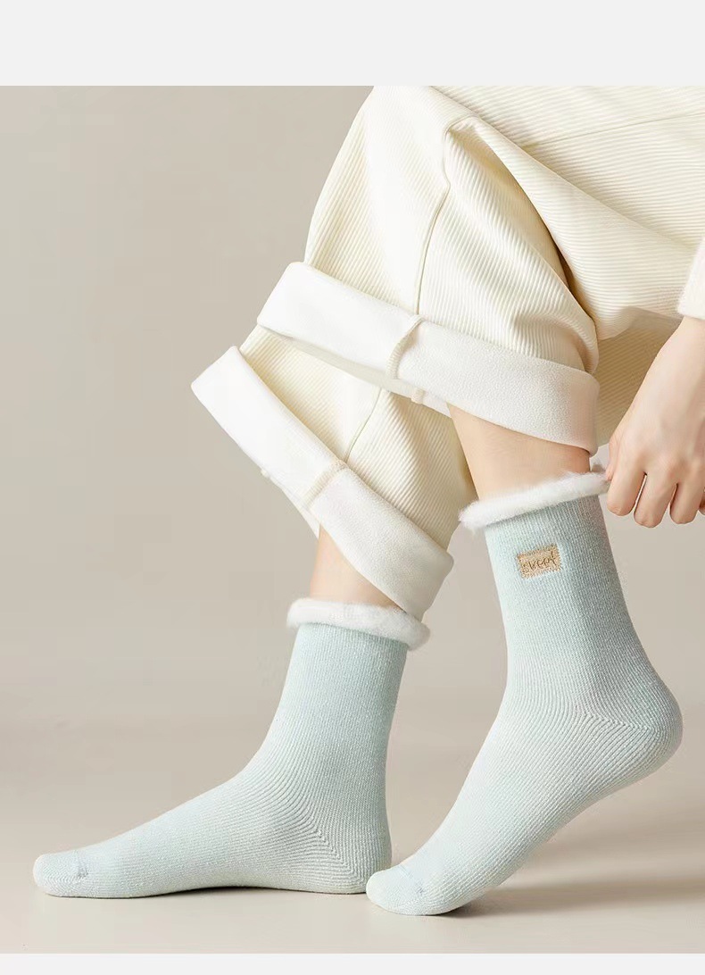 秋冬の毛輪の靴下とベルベットの厚い中筒の靴下の女性の綿の靴下の超厚いウールの靴下の保温の睡眠の床の靴下の月子の靴下