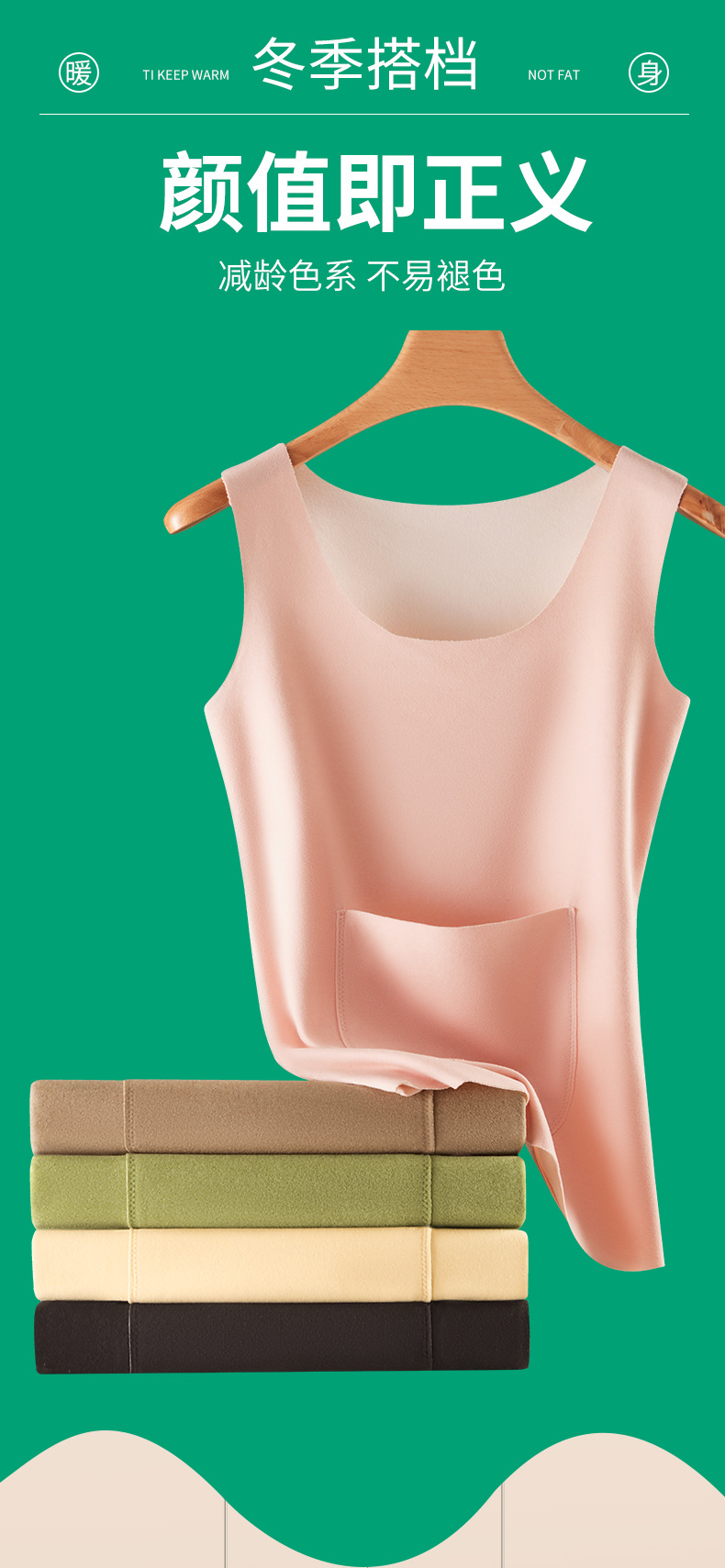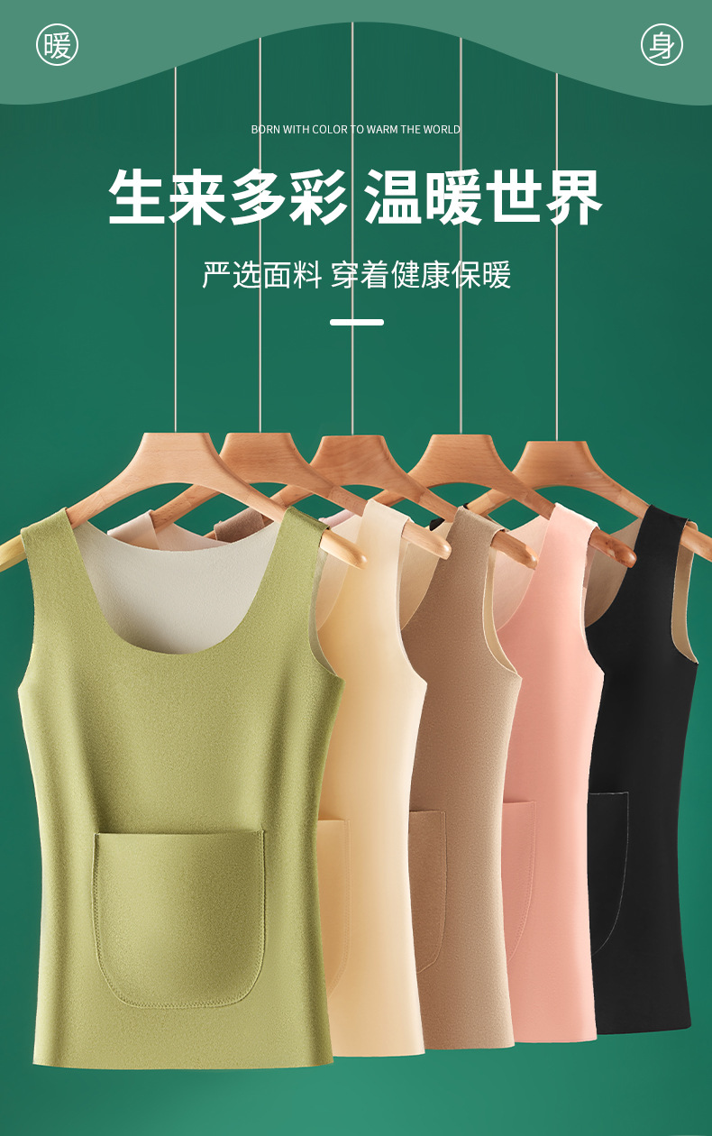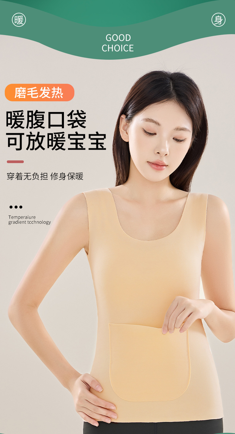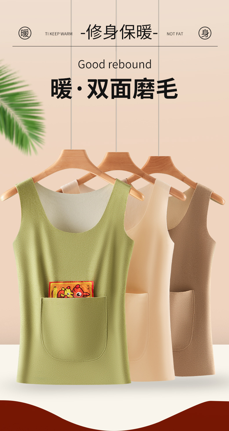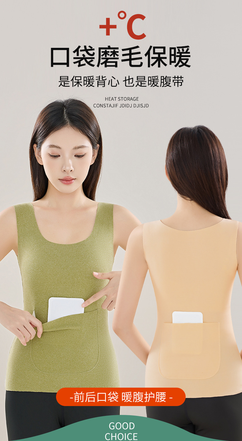 秋冬ABパイル防寒発熱保温プラスポケットダブルポケット両面毛磨きベスト女性ギャルデコルテ美背下着