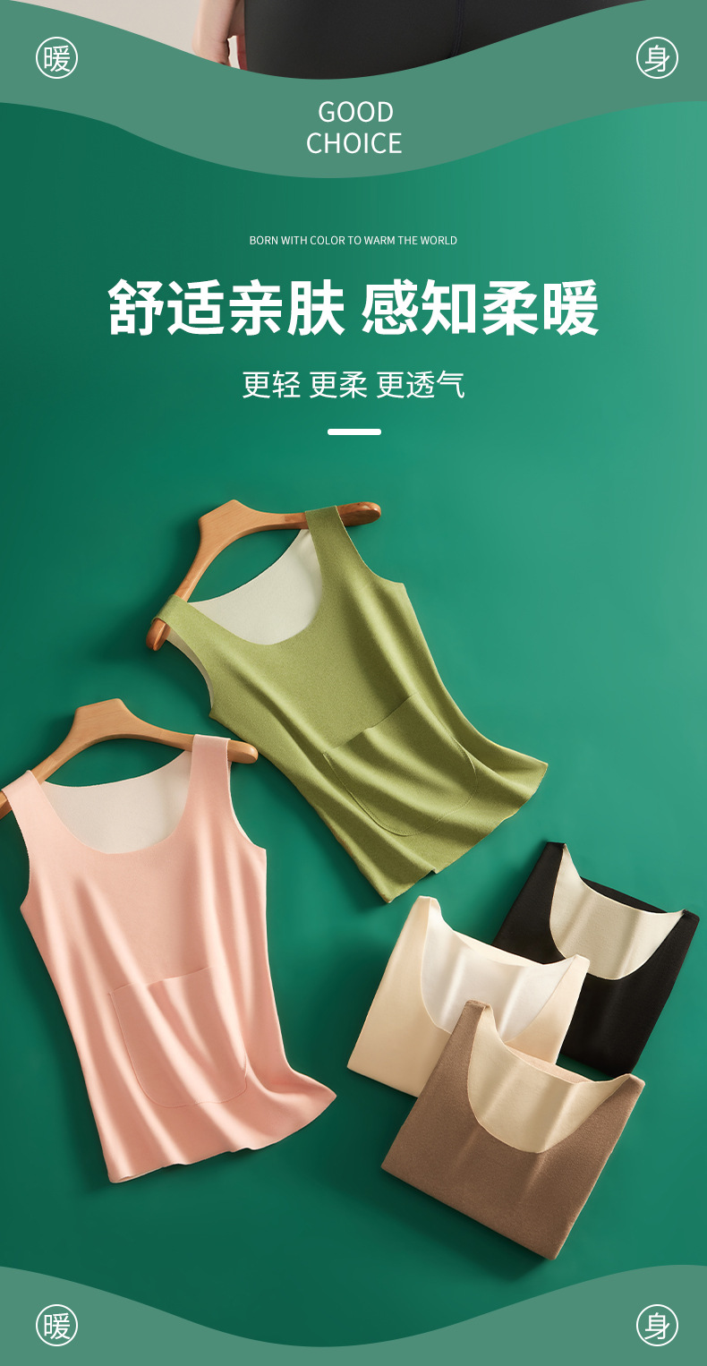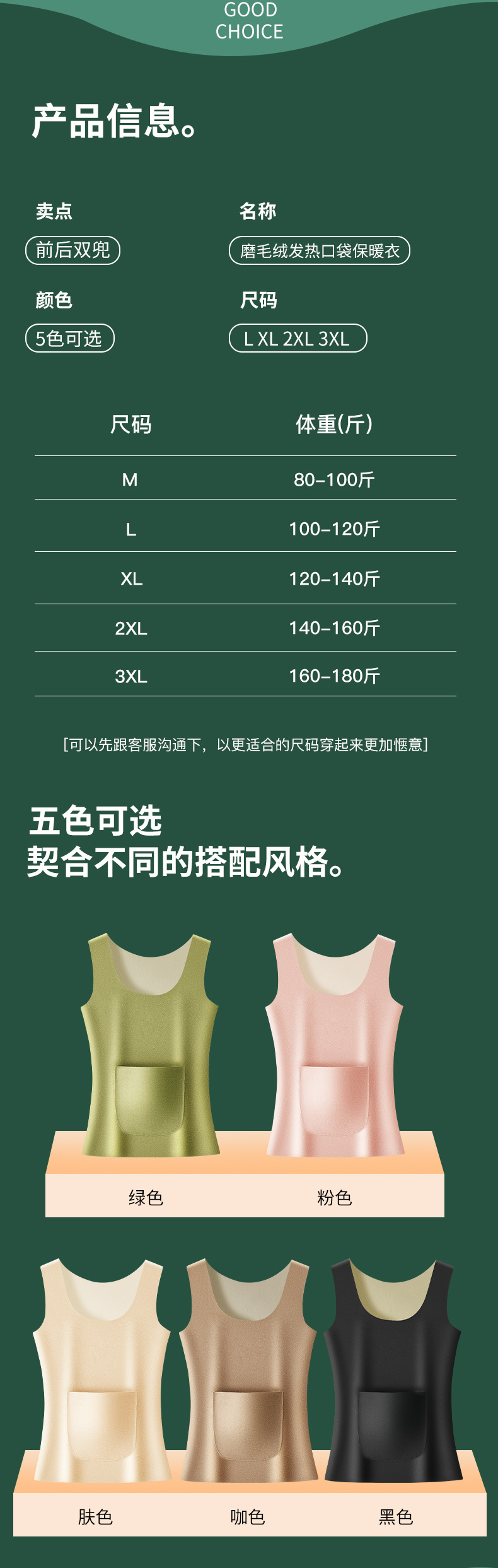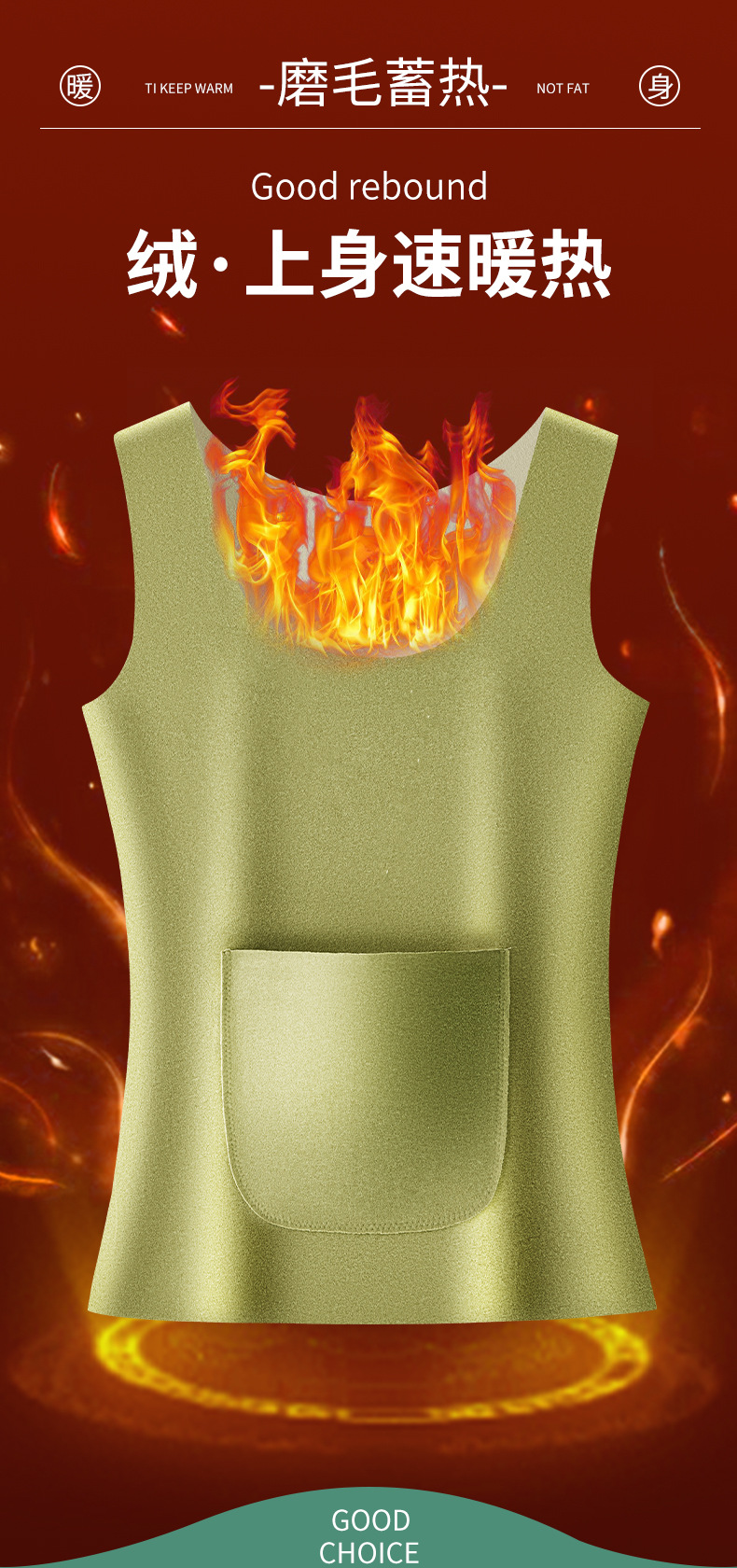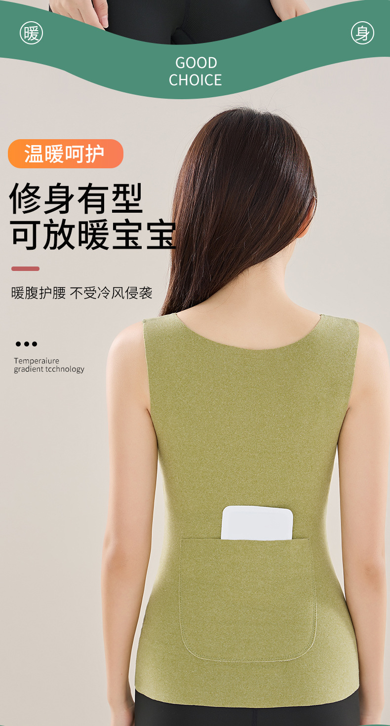 秋冬ABパイル防寒発熱保温プラスポケットダブルポケット両面毛磨きベスト女性ギャルデコルテ美背下着