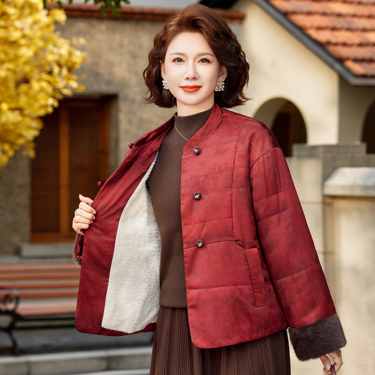 新中式国风短款棉服女中老年新款冬季妈妈装立领盘扣时尚保暖棉衣