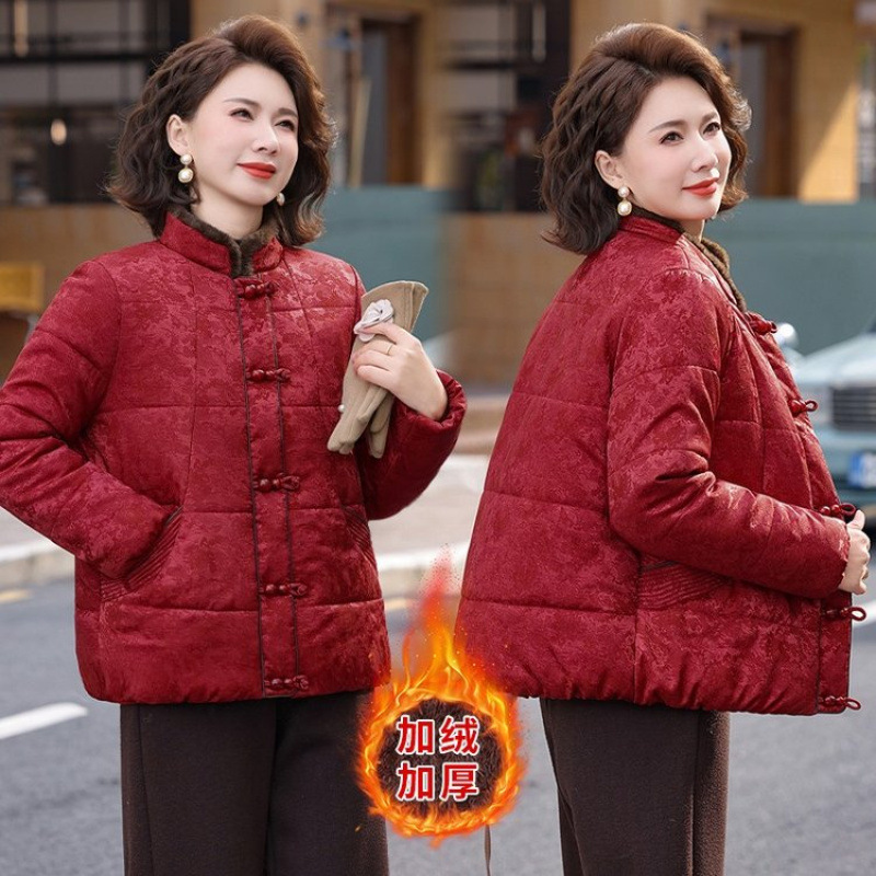 宽松老年中式气质女装棉服加绒加厚中年外套保暖秋冬款立领妈妈装