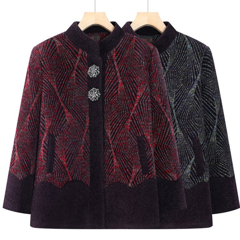 2025春のお母さんは新型の毛を着ます。コートの新しい中国式の高級ボタンのカーディガンの中で老年の婦人服の卸売りです。