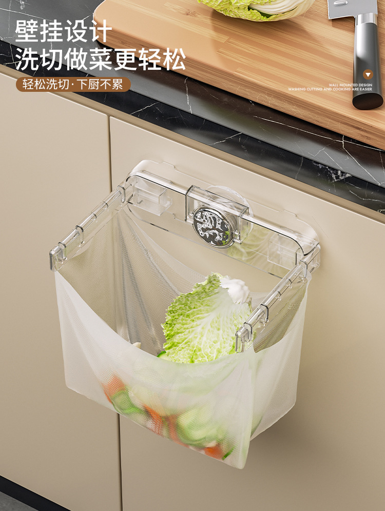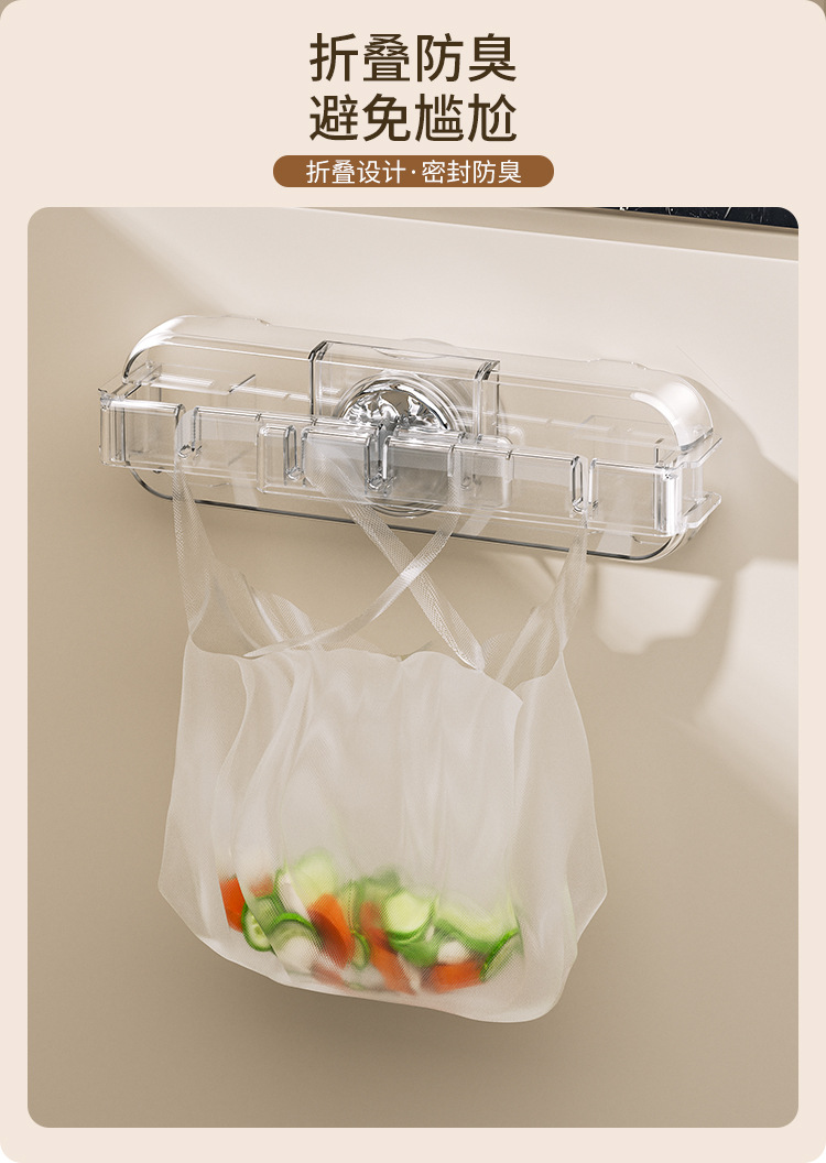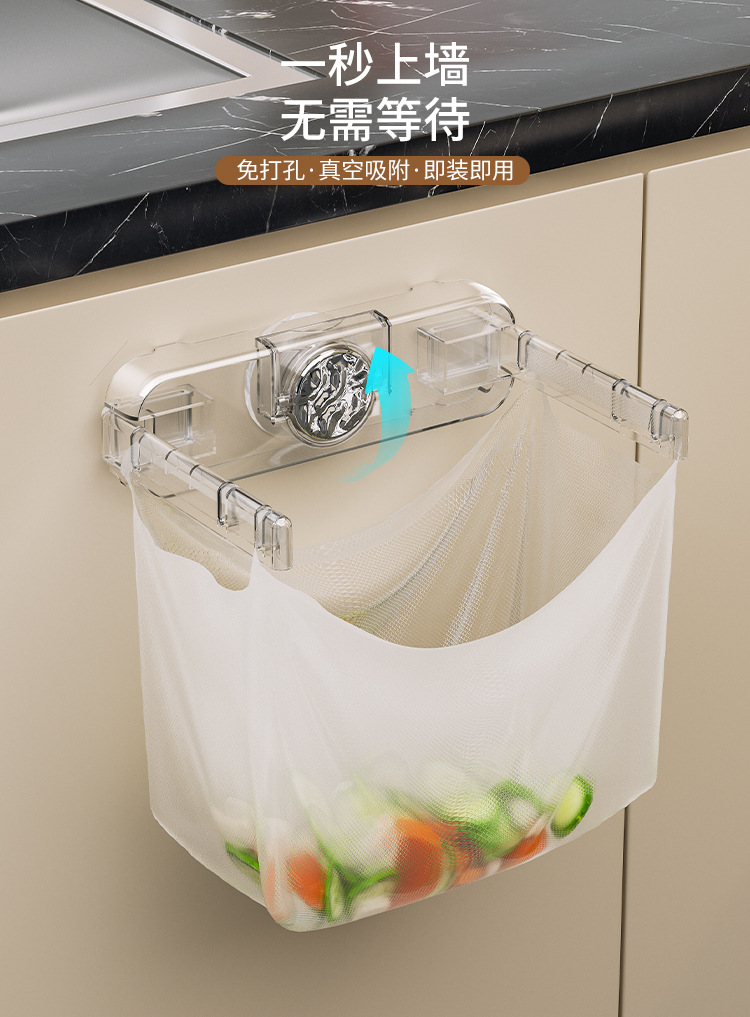 可折叠垃圾桶家用橱柜吸盘式塑料袋挂架厨房浴室收纳架垃圾袋支架