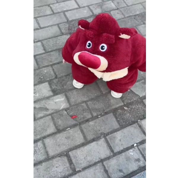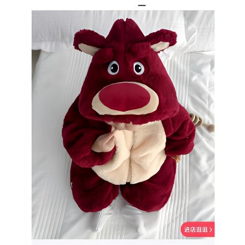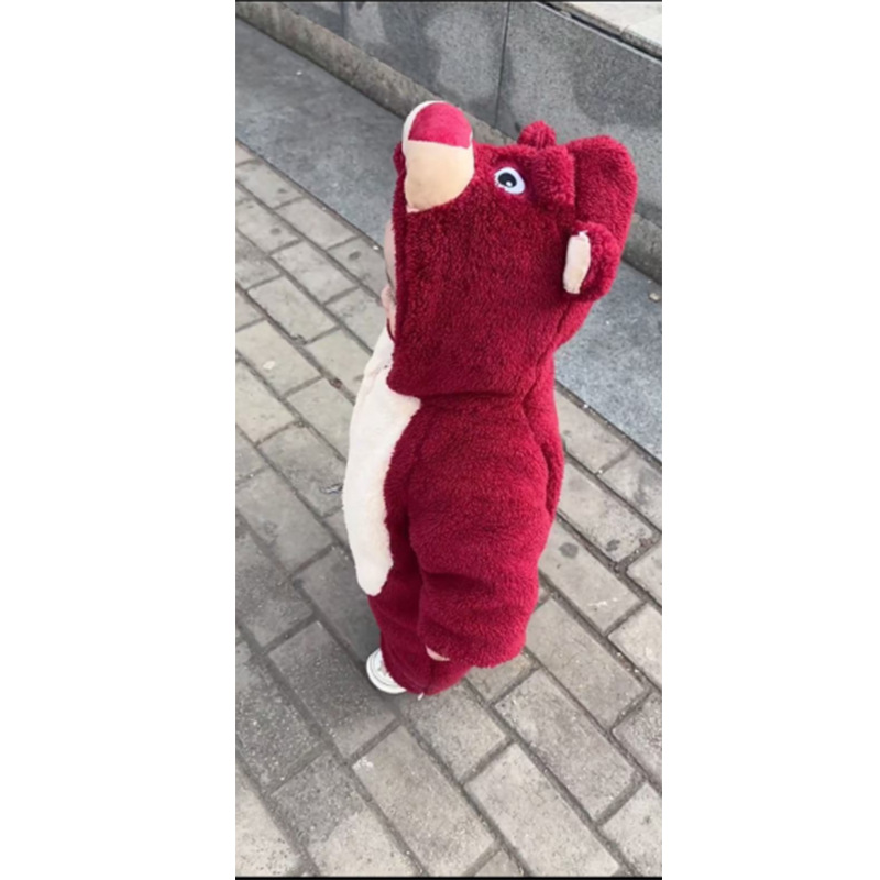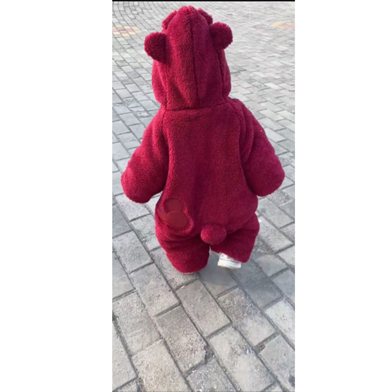 バーガンディ [ストロベリーベア フード付き厚みのあるジャンプスーツ]