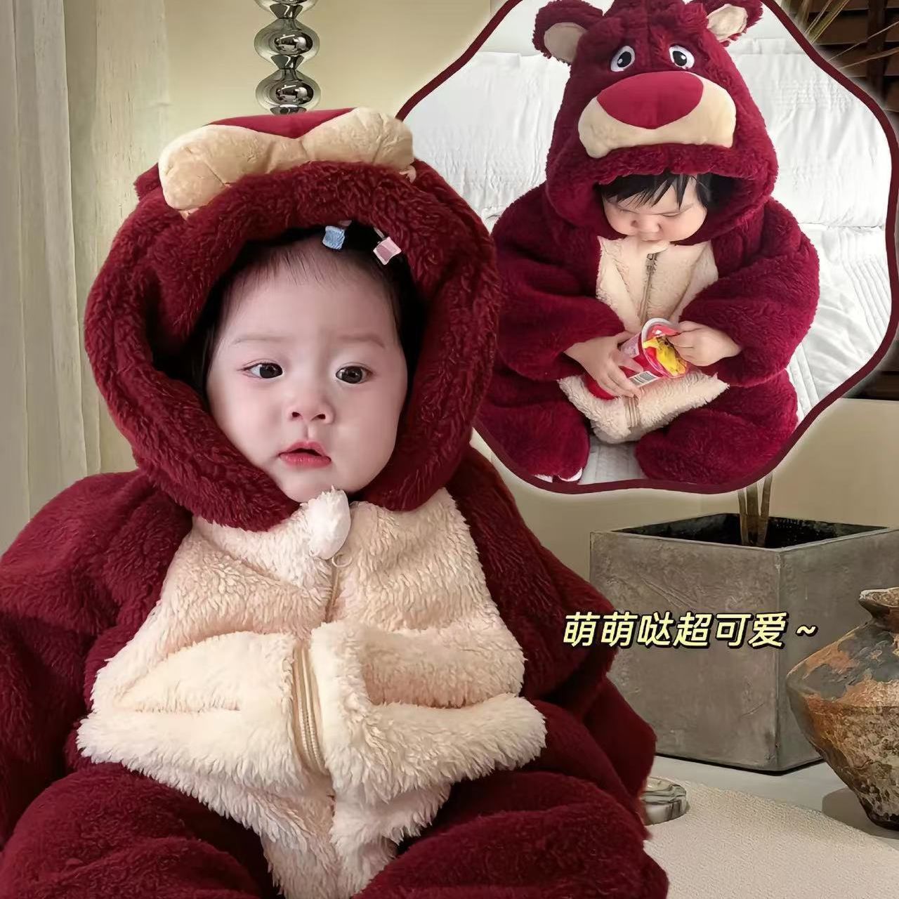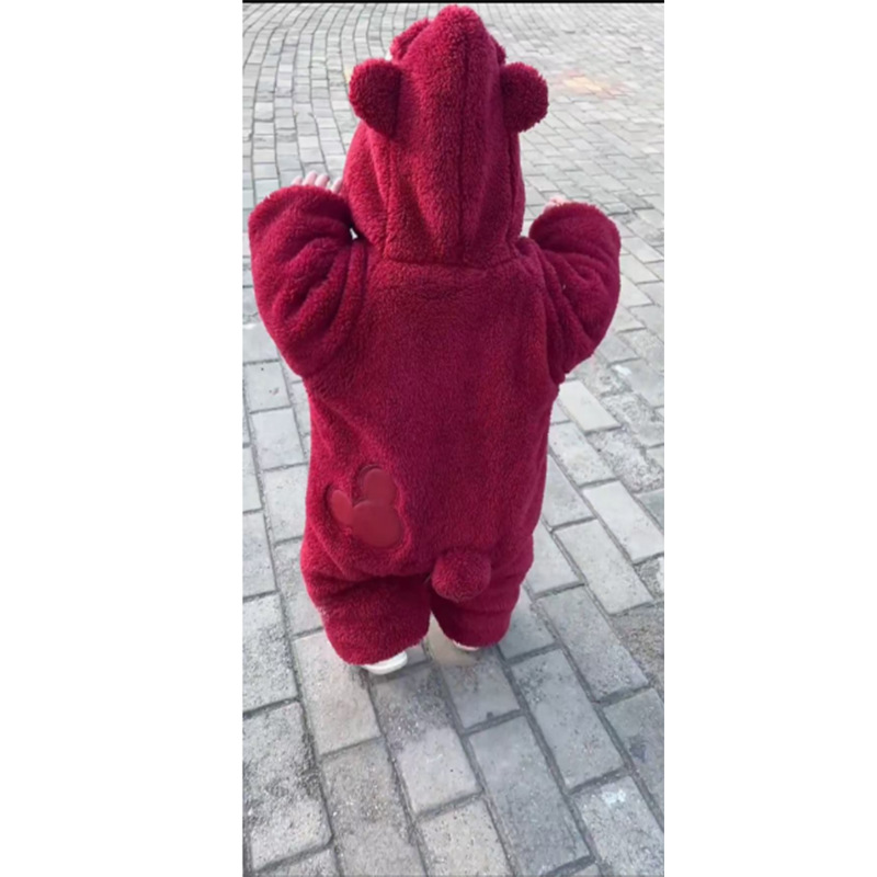 婴儿冬装拜年服男女宝宝可爱超萌毛茸茸保暖连体哈衣冬季外出爬服