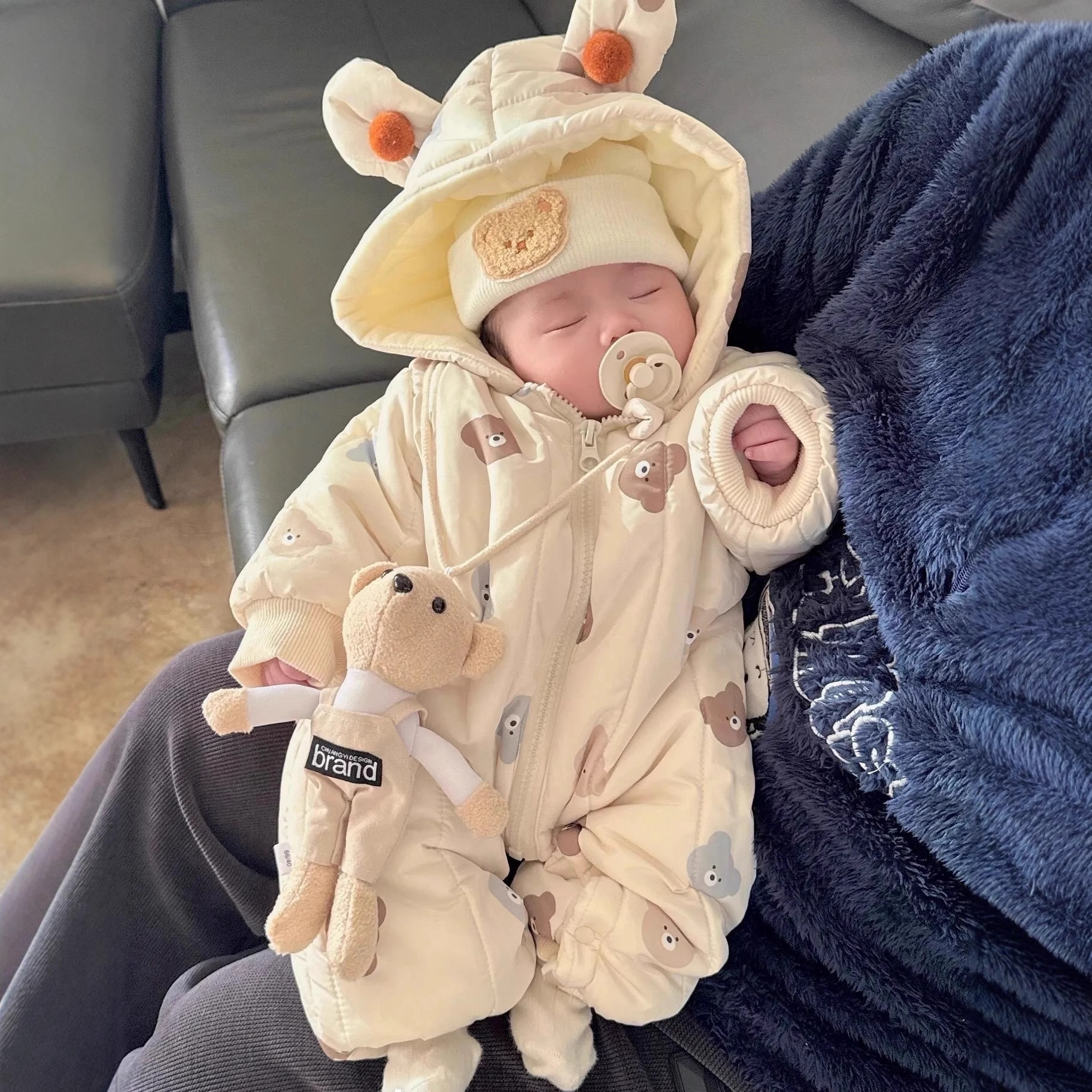 新生宝宝百天连体衣婴儿衣服冬装加厚加绒外出外出服卡通满月冬季