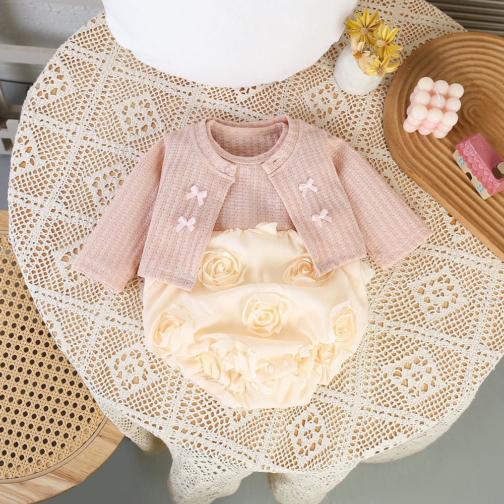 2025年新作 女の子 夏用ロンパースセット 長袖 おしゃれ かわいい 韓国風 パッチワーク 女児セット