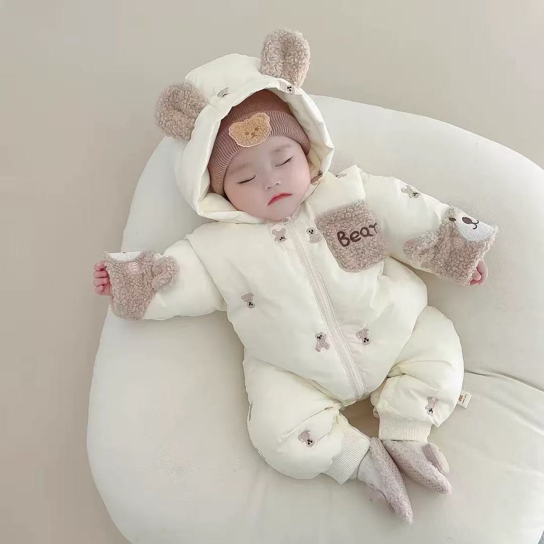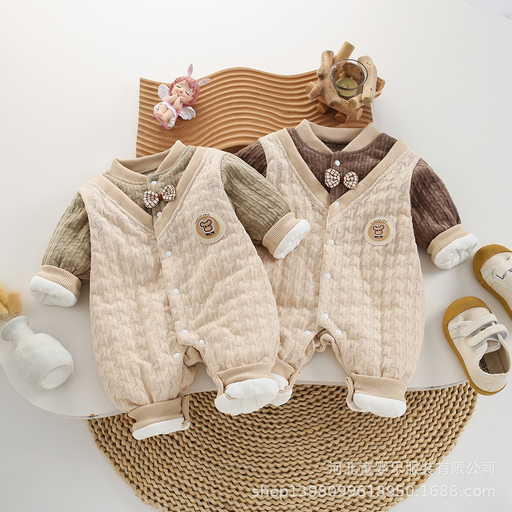乳幼児用冬用裏起毛厚手服、ベビー外出用ロンパース、新生児冬用綿服、綿入り服、外着用ワンピース