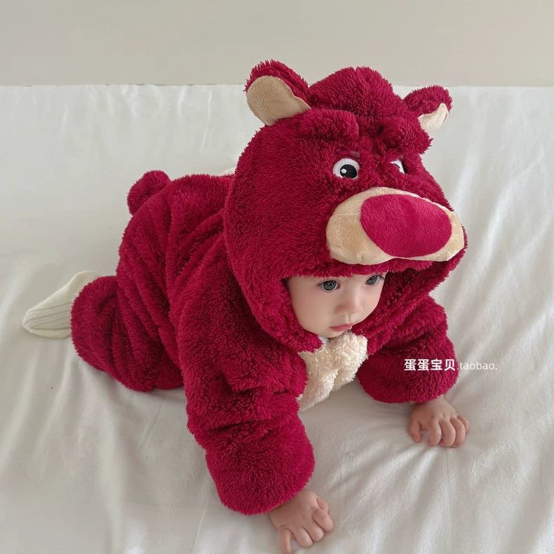 いちご熊服赤ちゃんが登る服秋冬ベルベット保温少女連体服赤ちゃんパジャマ男子家庭服