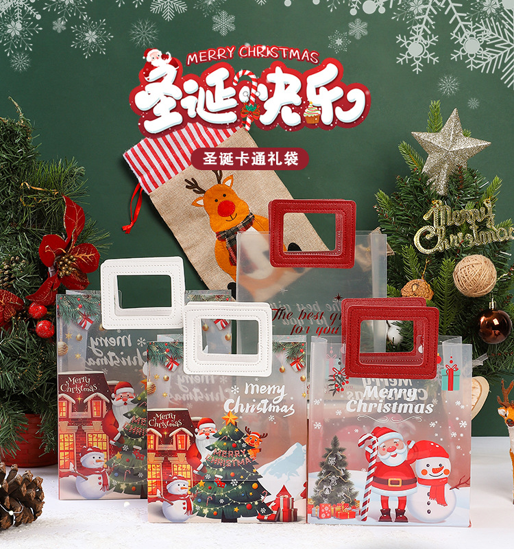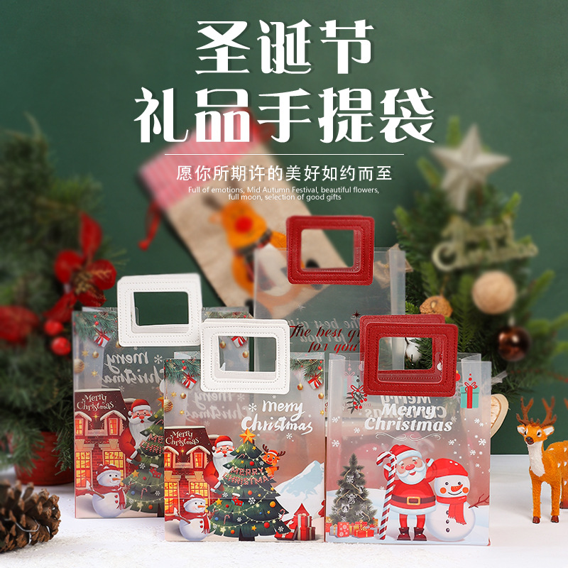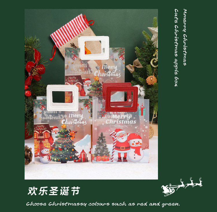 圣诞节礼品袋圣诞手提袋空平安果苹果袋糖果礼物袋创意卡通透明袋