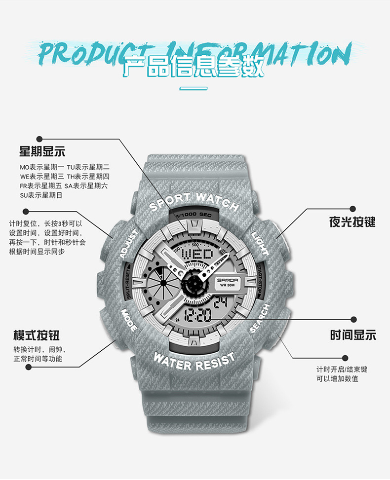 2024新型カウボーイ生放送起爆ファッション電子時計カップルファッション多機能腕時計運動防水ファッション