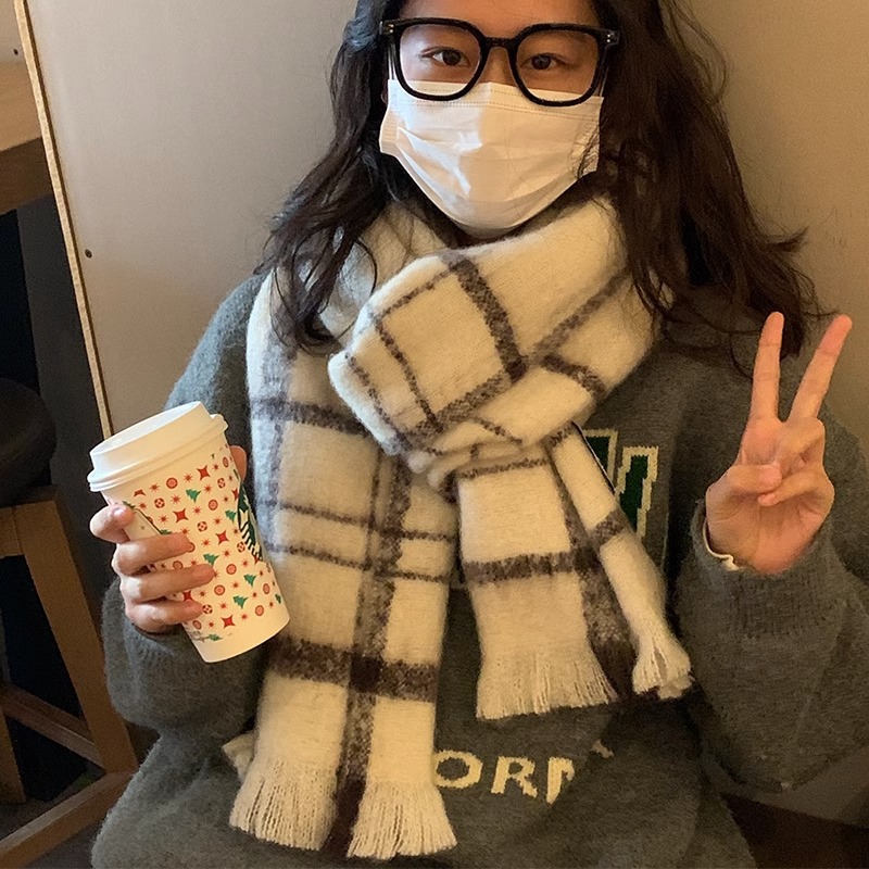 韓国egg馬海毛挟みマフラー女性冬の柔らかいモチモチ毛糸ニット保温厚いマフラー学生ins潮