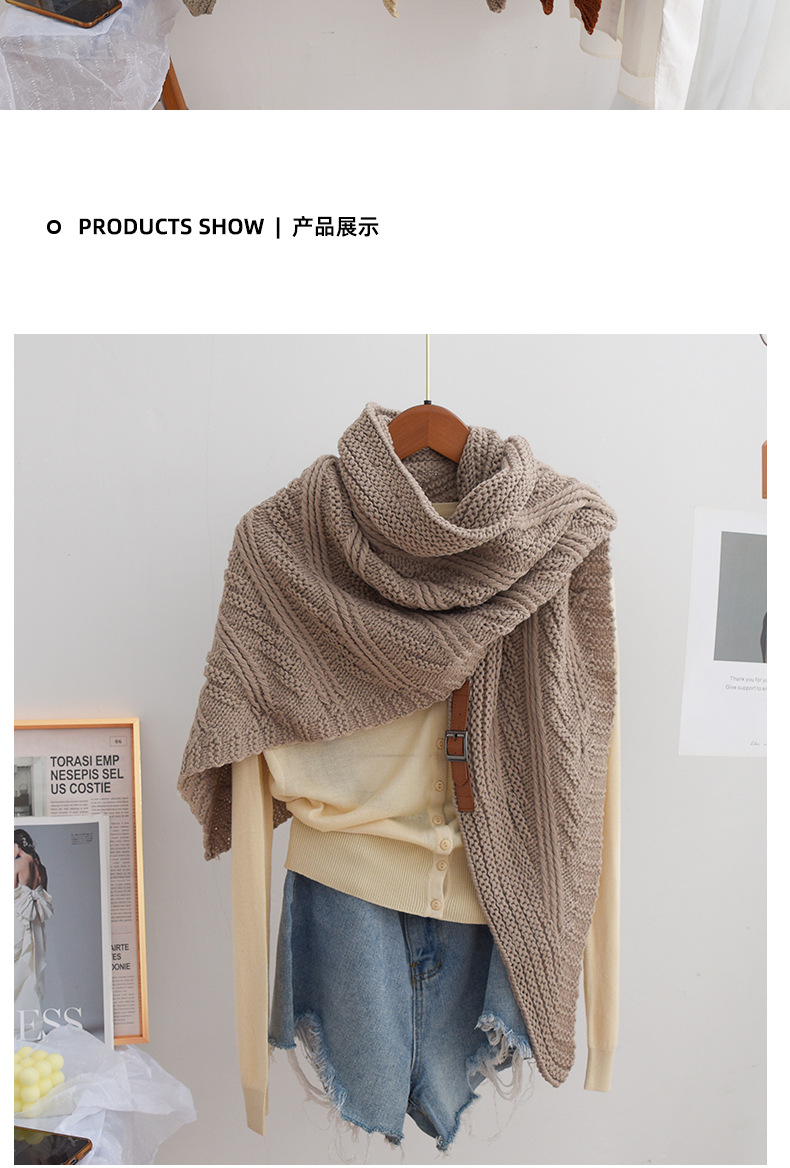 冬の高級感三角スカーフ、暖かい革紐付きショール、女性用スリット入り厚手ケープ、秋冬用ニットケープ