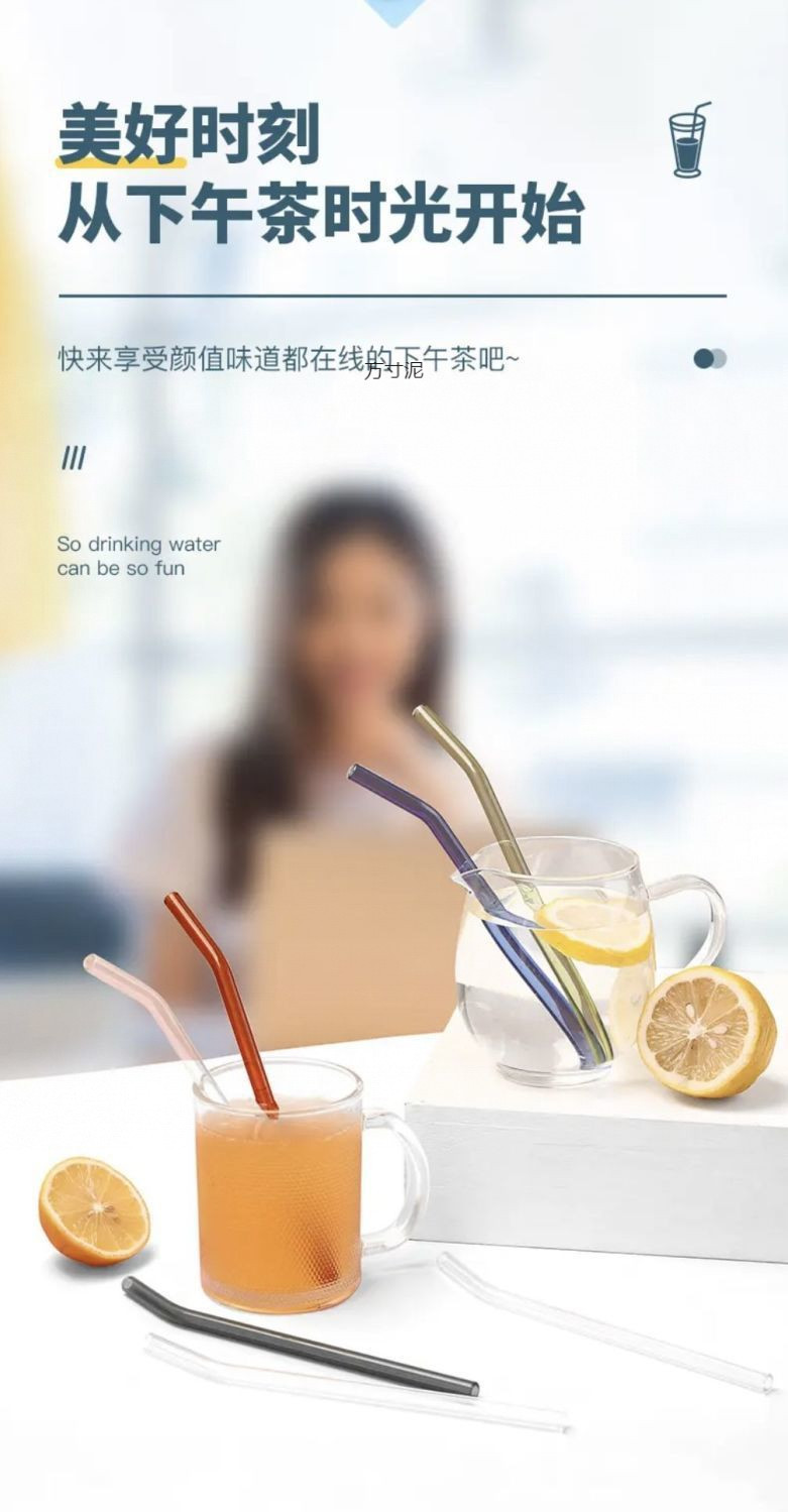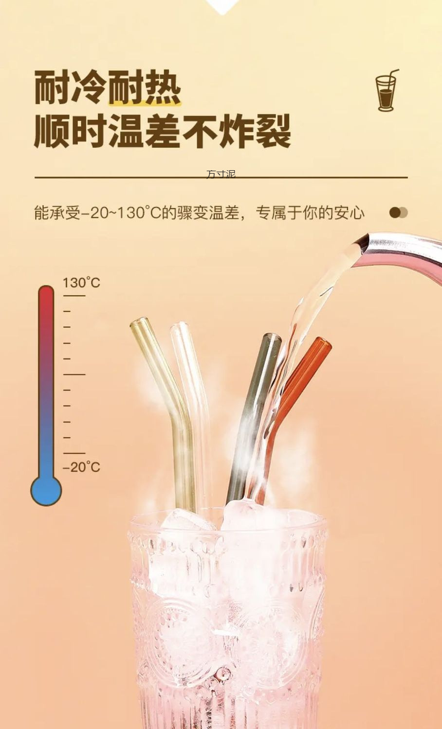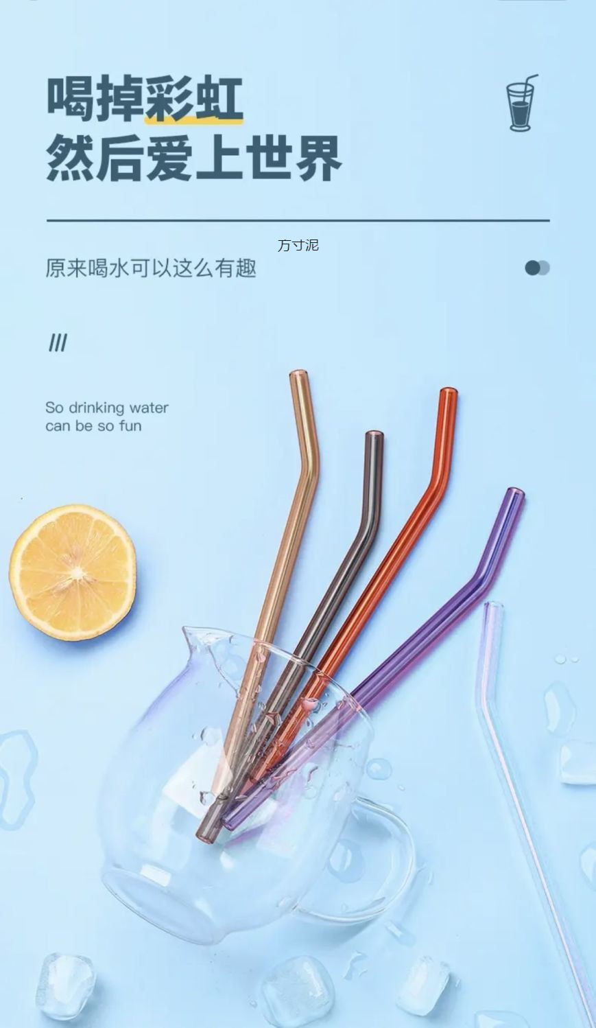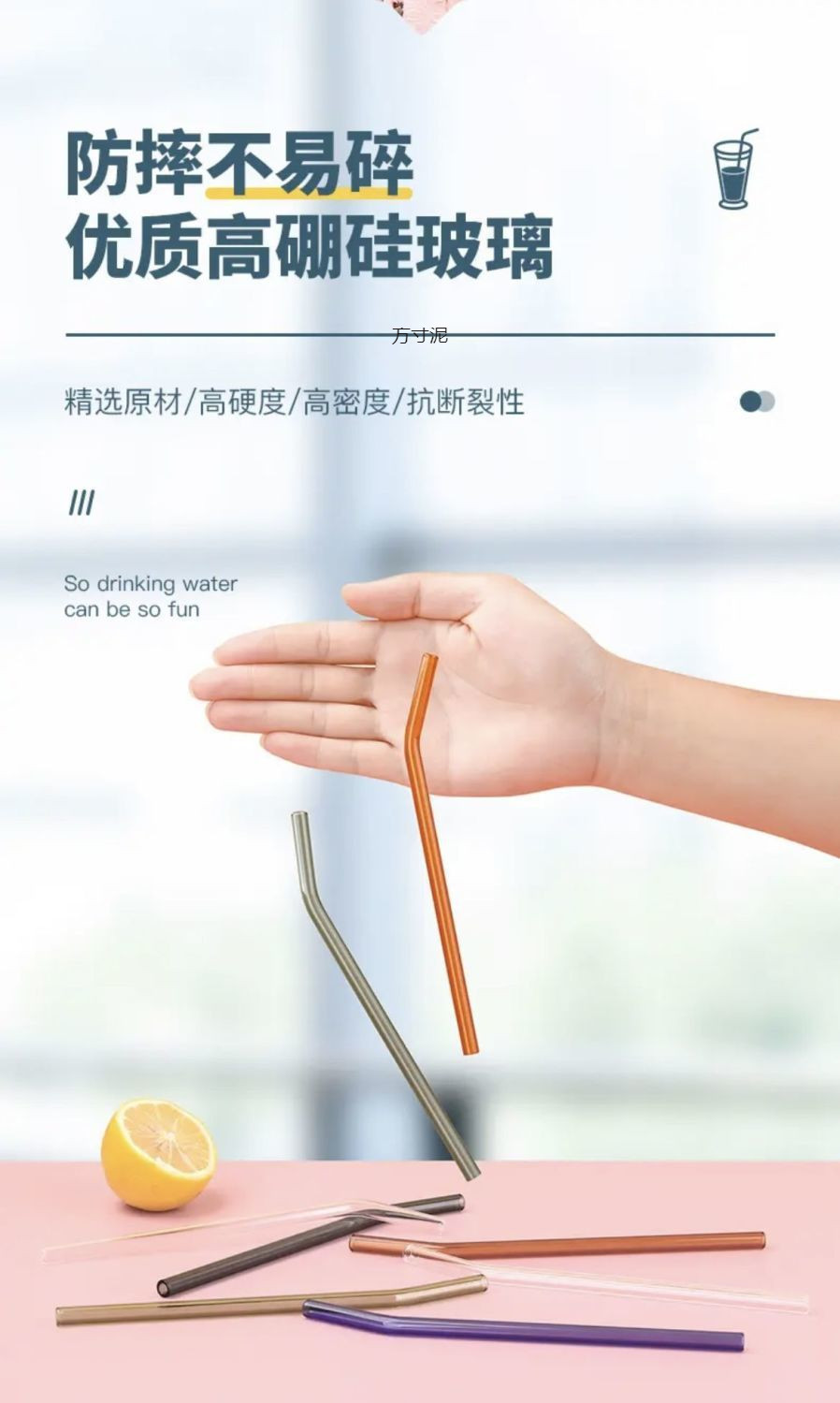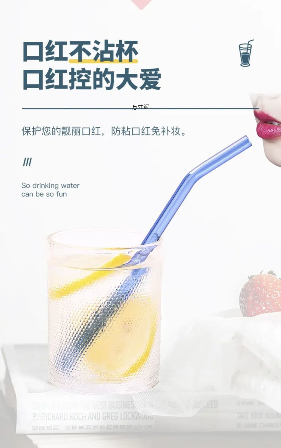 ガラスストロー非使い捨て高颜値カラー耐熱ストロー厚いネット赤食品級工場一件卸売り