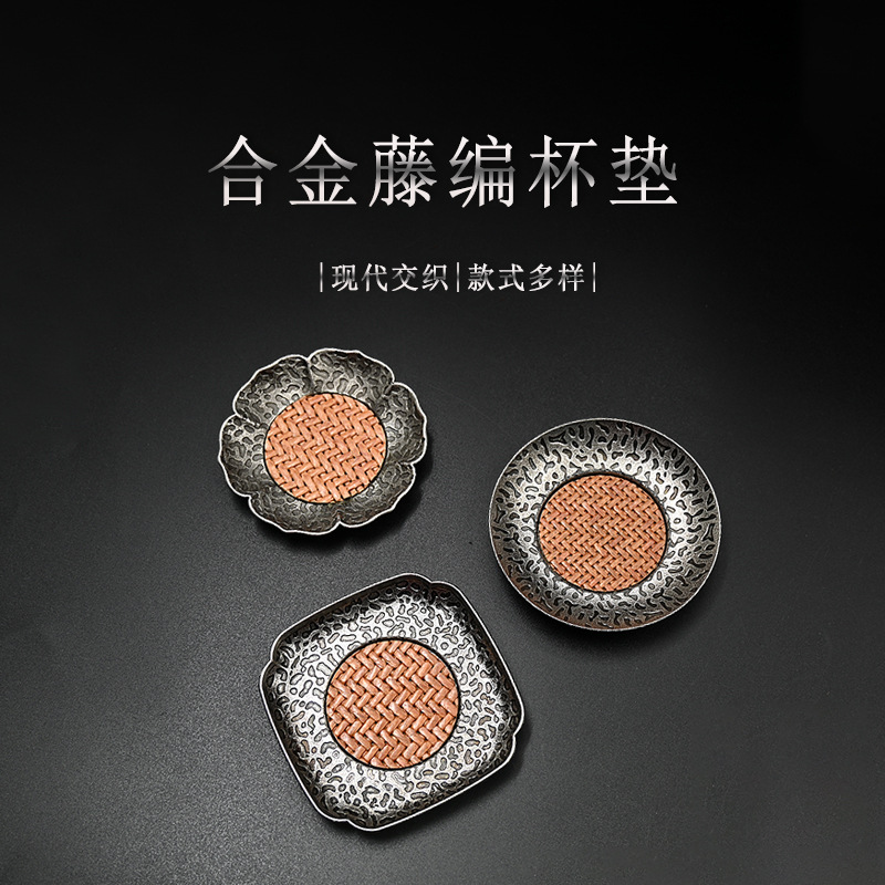 新型合金藤席カップマット断熱マットレトロ茶托軽贅沢高級感滑り止めパーマ防止茶器部品