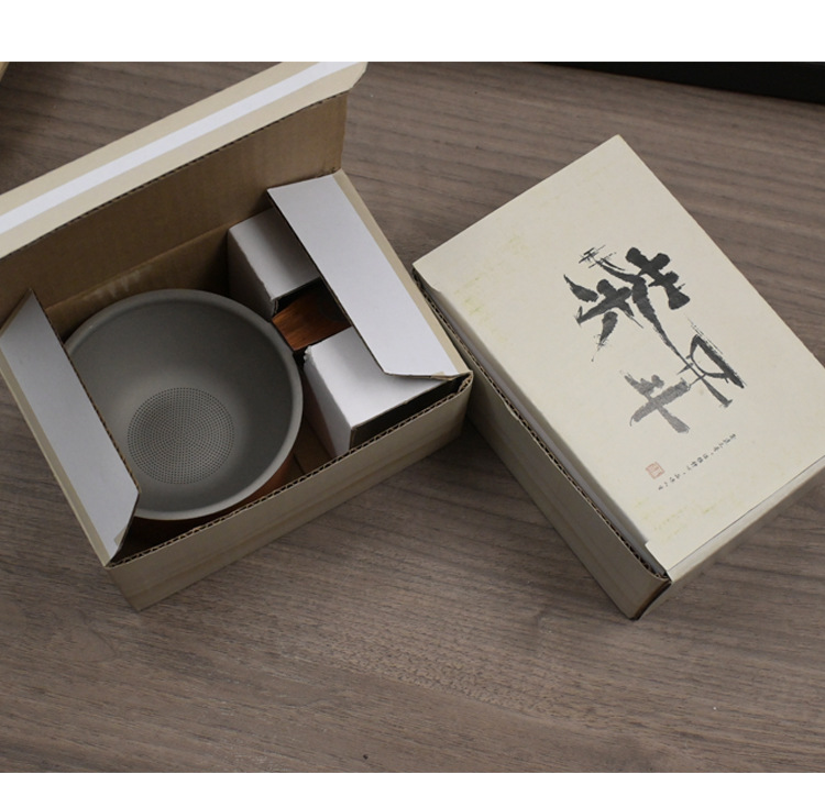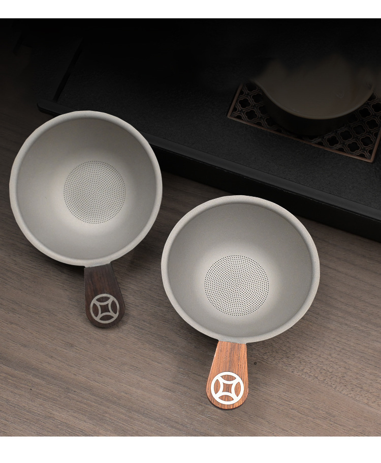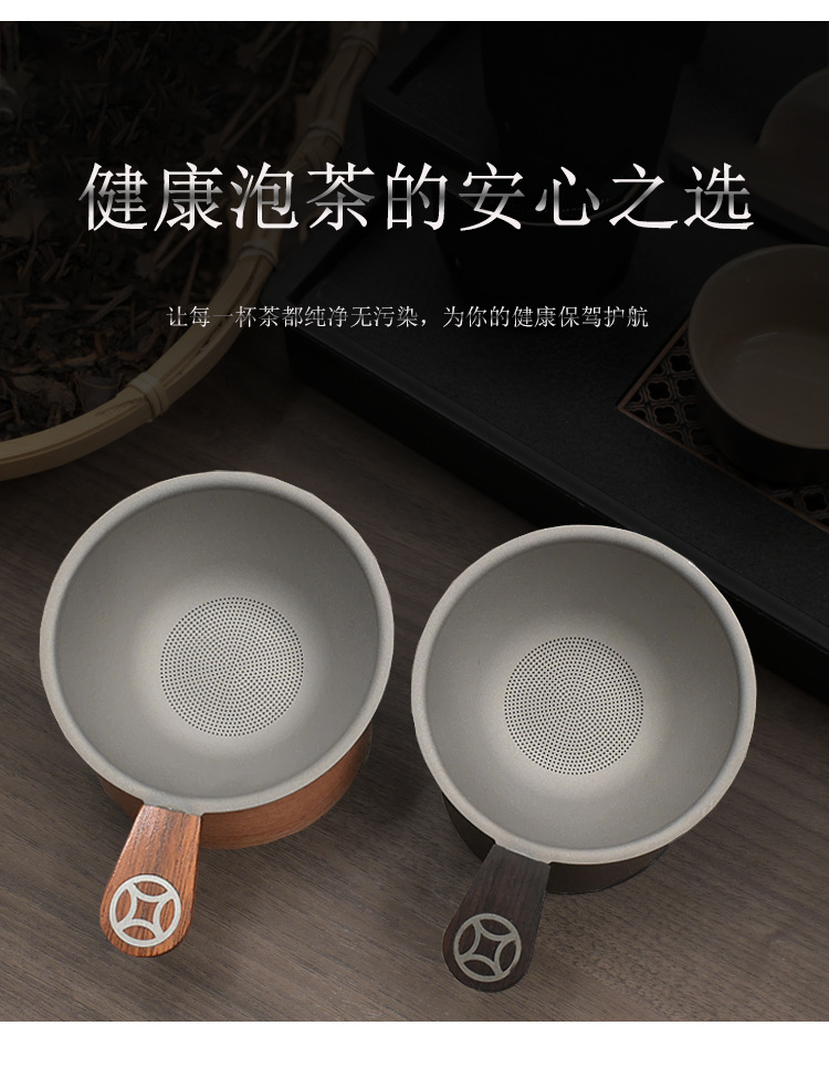 黑陶一体黑檀木柄茶漏滤茶器茶叶过滤器创意陶瓷茶隔茶具用品配件