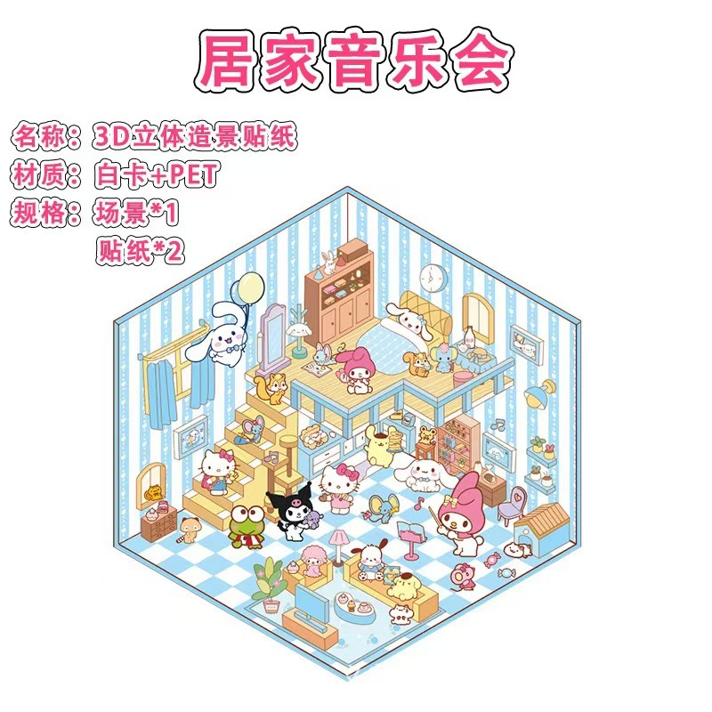 サンリオ ミニチュアシーン 組み立て不要 デコレーションステッカー ビジュアル3D立体ハウス 立体クリエイティブ