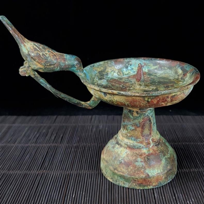 青銅器青銅古鳥炳灯置物古遊び雀鳥収蔵骨董山東博物館蔵手作りランプ