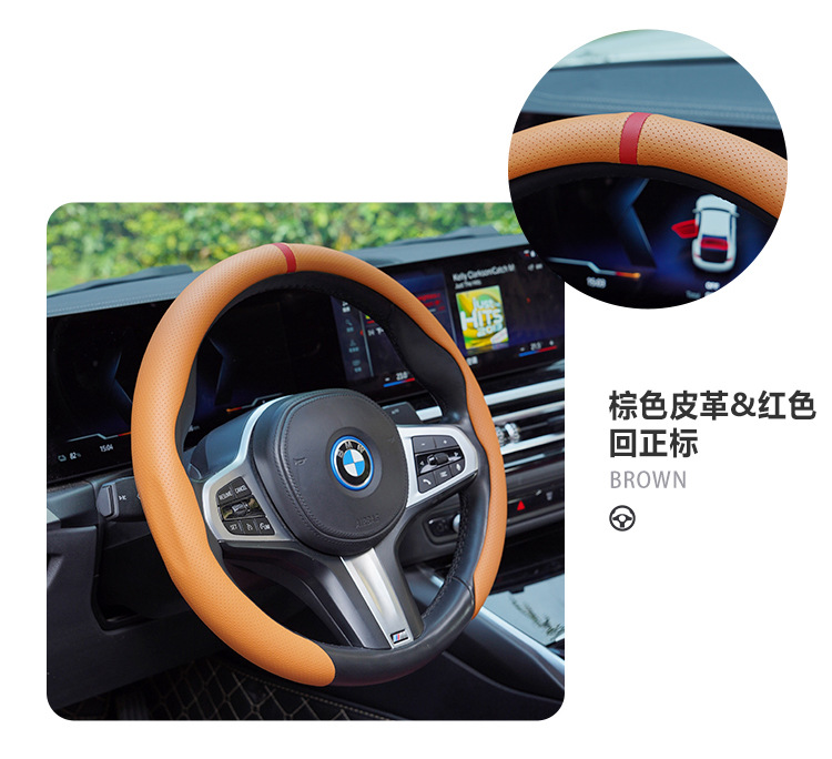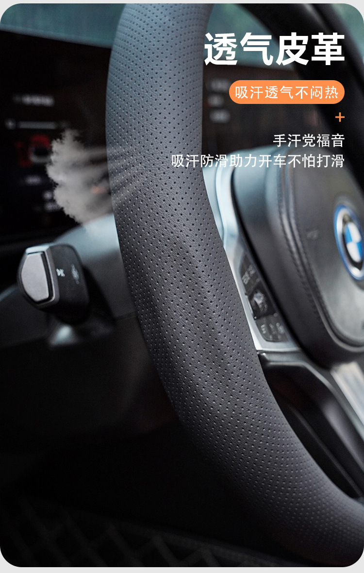 ナパ革ハンドルカバー四季通用新型穴開け滑り止め吸汗運動カード式正標ハンドルカバー