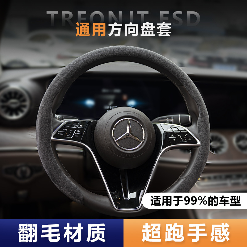 滑り止めスエードステアリングホイールカバー吸汗性D字型ラウンドユニバーサルステアリングホイールハンドルバーカバー四季ステアリングホイールカバー