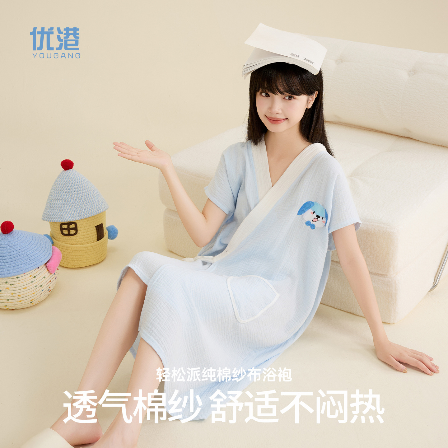 夏季浴袍纯棉纱布轻薄透气洗澡吸水速干可穿式浴巾浴裙宿舍家用