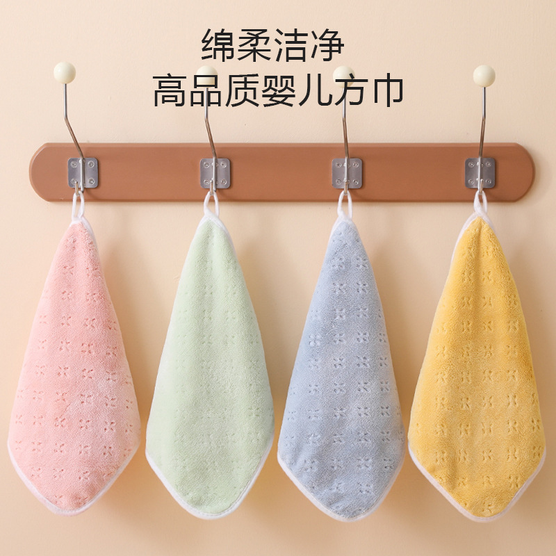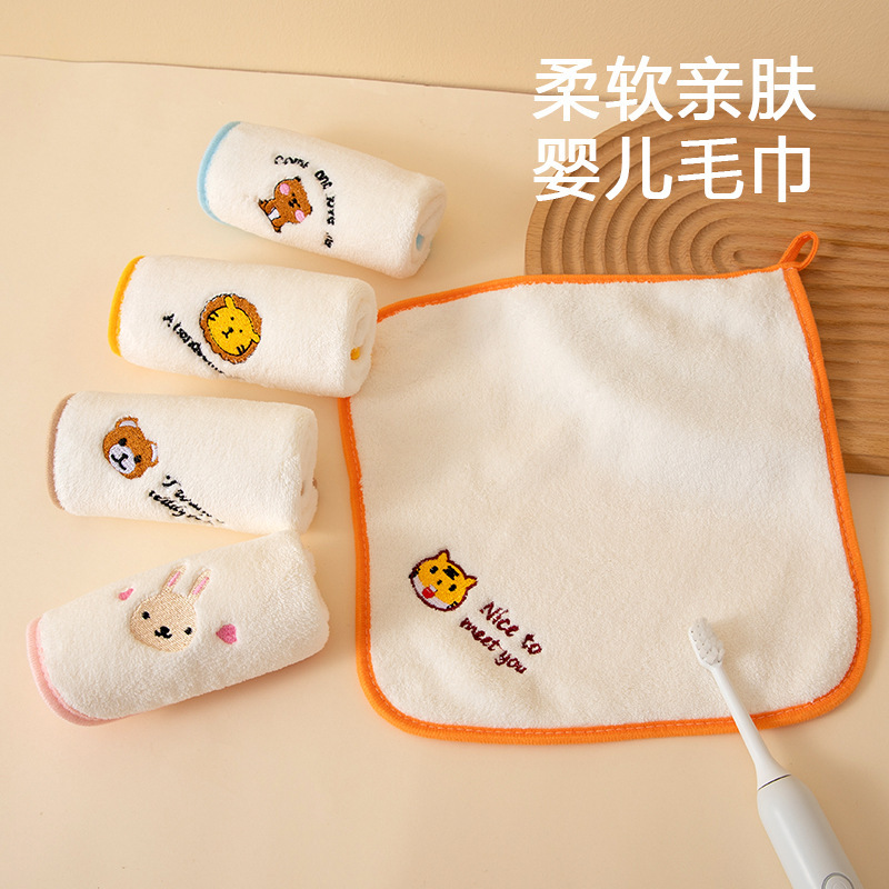 コーラルベルベットスクエアタオル幼稚園用洗顔ハンドタオル柔らかく吸収性の良い小さなタオル刺繍入り漫画子供用フェイスタオル