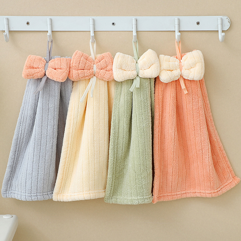 サンゴの子供の手拭きのかわいい漫画の蝶結びの掛けタオルの幼稚園の柔らかい吸水の小さいタオル