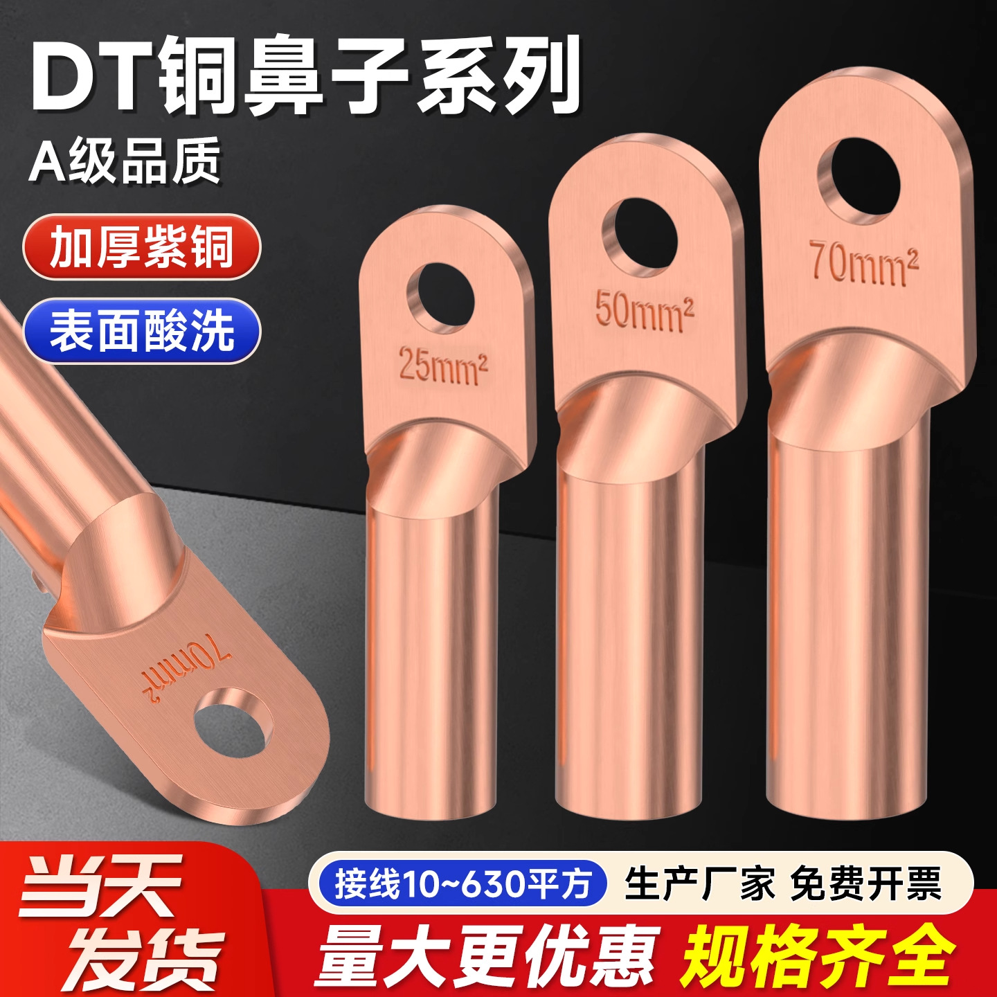 鼻子导线铜接头DT10/16/25/35/50/70-500平方接线端子堵油线耳