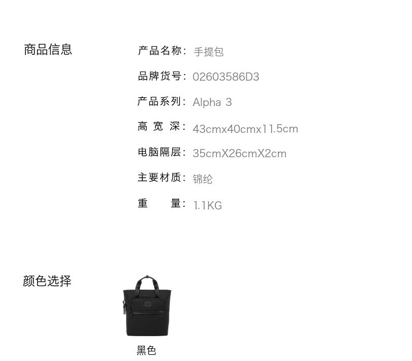 大容量リュックサックアルファ3シリーズ弾道ナイロンビジネスカジュアル15インチコンピュータバックパック2603578