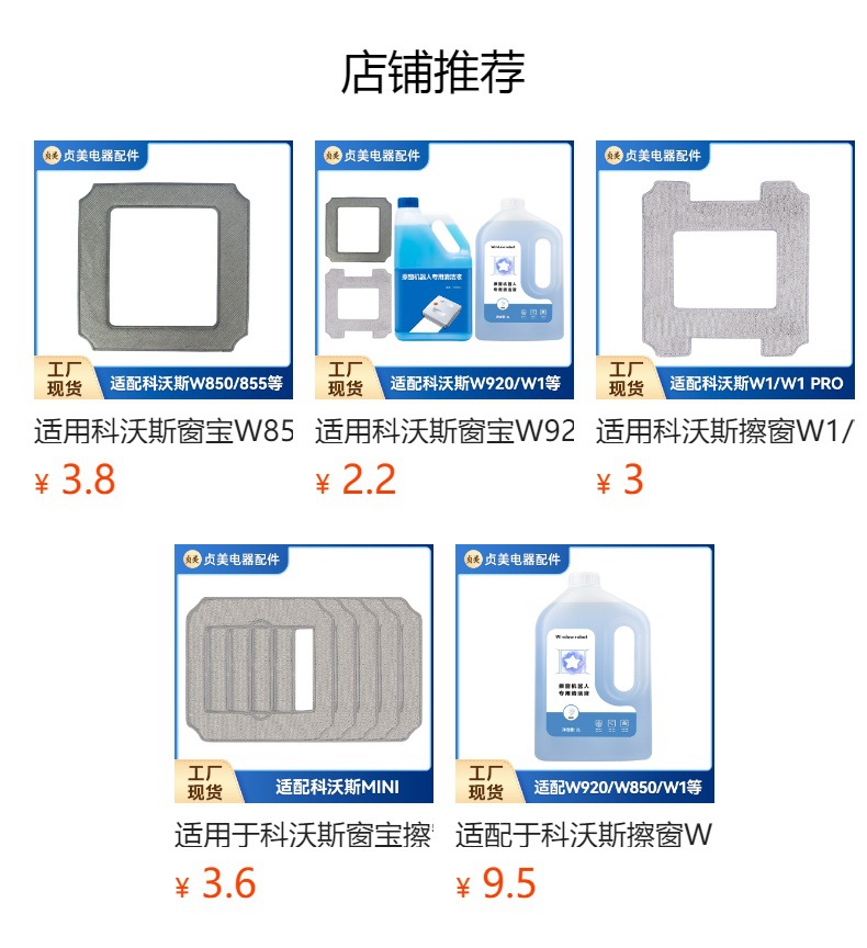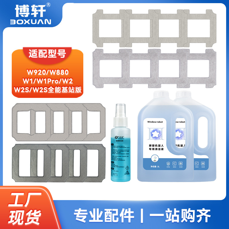 博轩适用科沃斯窗宝W920/W1/W2擦窗机器人配件MINI抹布玻璃清洁液