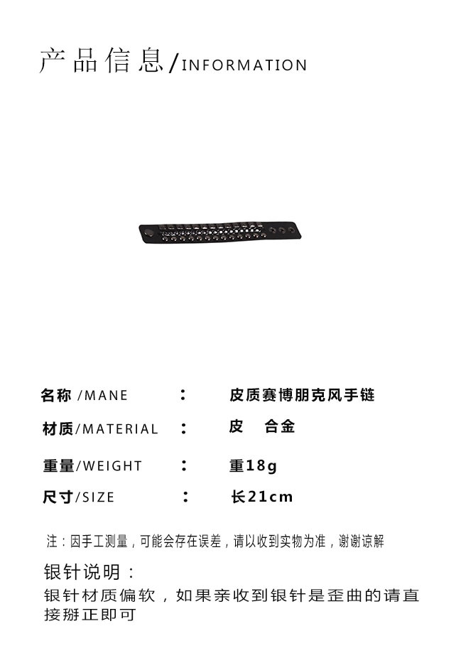 甘いクールな暗黒風ベルトブレスレットパンクゴシック風ギャルアクセサリー皮質リベットブレスレット