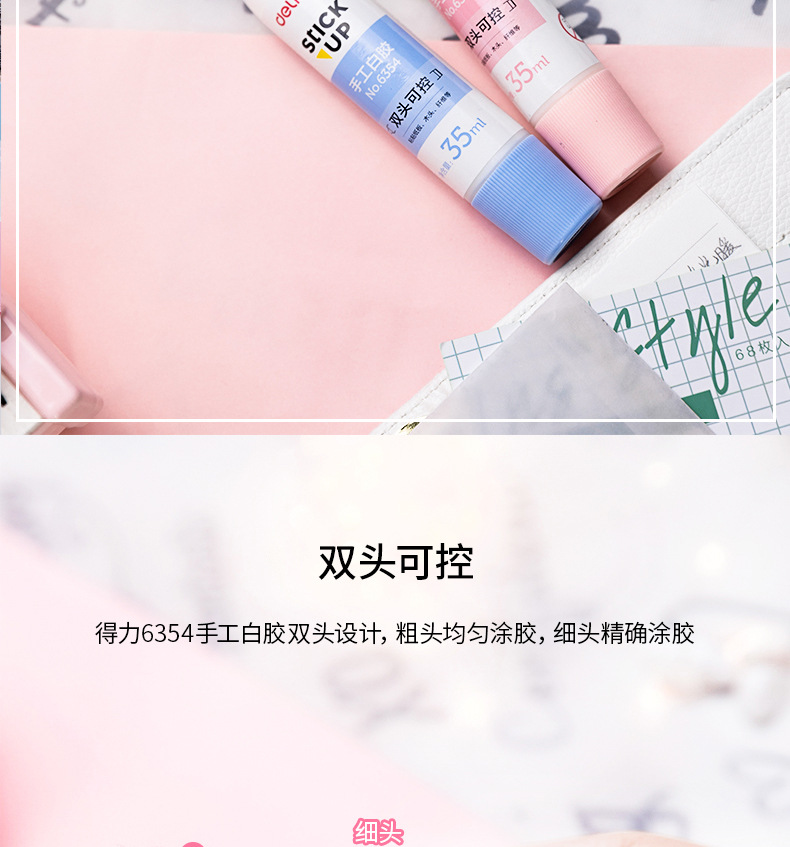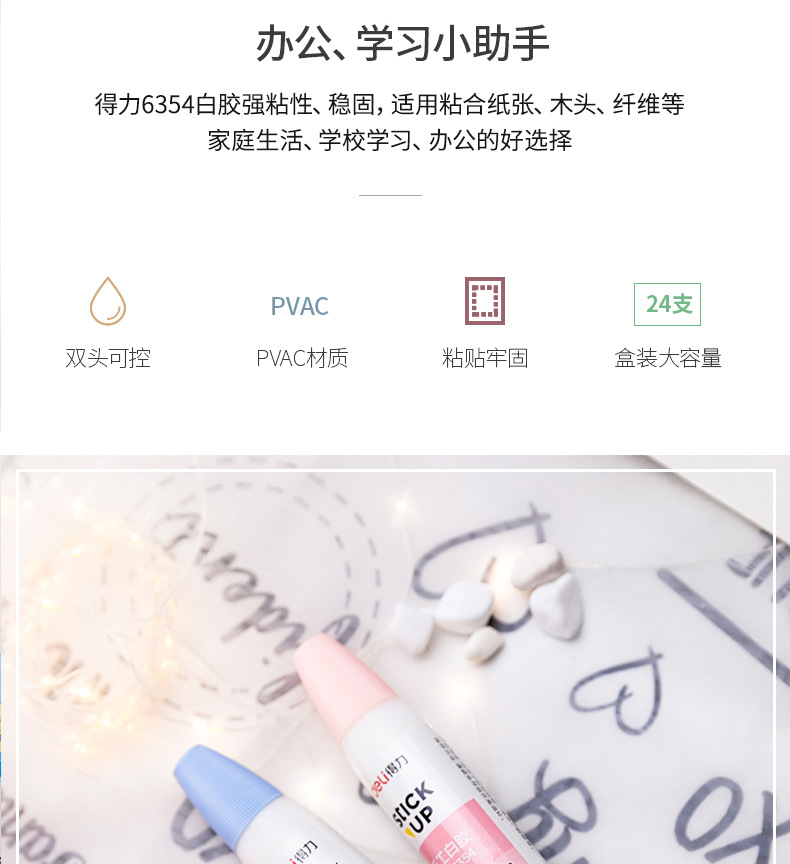 得力6354手作り白糊美術diyダブルヘッド制御手作り35ml学生液体乳白糊