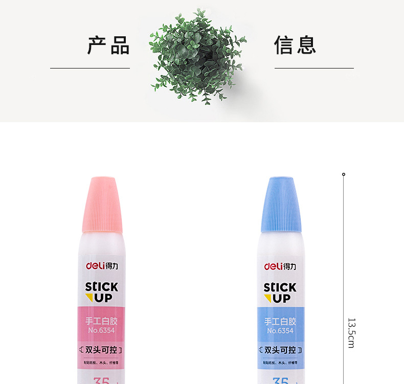 デリ6354手作り乳白色接着剤 両頭コントロール可能DIY接着剤35ml学生用美術液体接着剤
