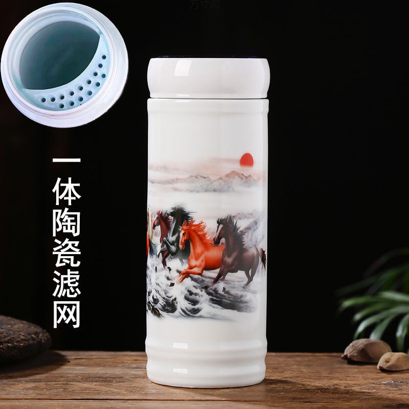 二重陶磁器のコップの男性の女性はお茶の漏れの大容量の旅行の保温カップの家庭用のお茶のコップの工場の1件の卸売りを持ちます。