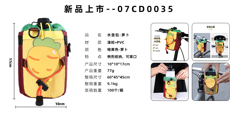 自転車キャロットウォーターボトルウォーターカップバッグフロントハンドルバーバッグハンドルバーハンギングバッグ収納マウンテンバイクロードバイク乗馬用品