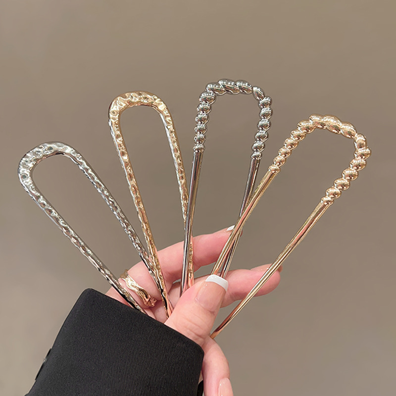金属u型发簪古风女高级感u型发夹新中式丸子头盘发神器简约发饰女
