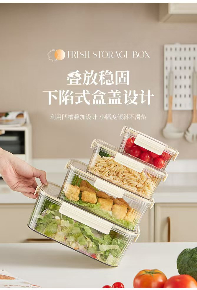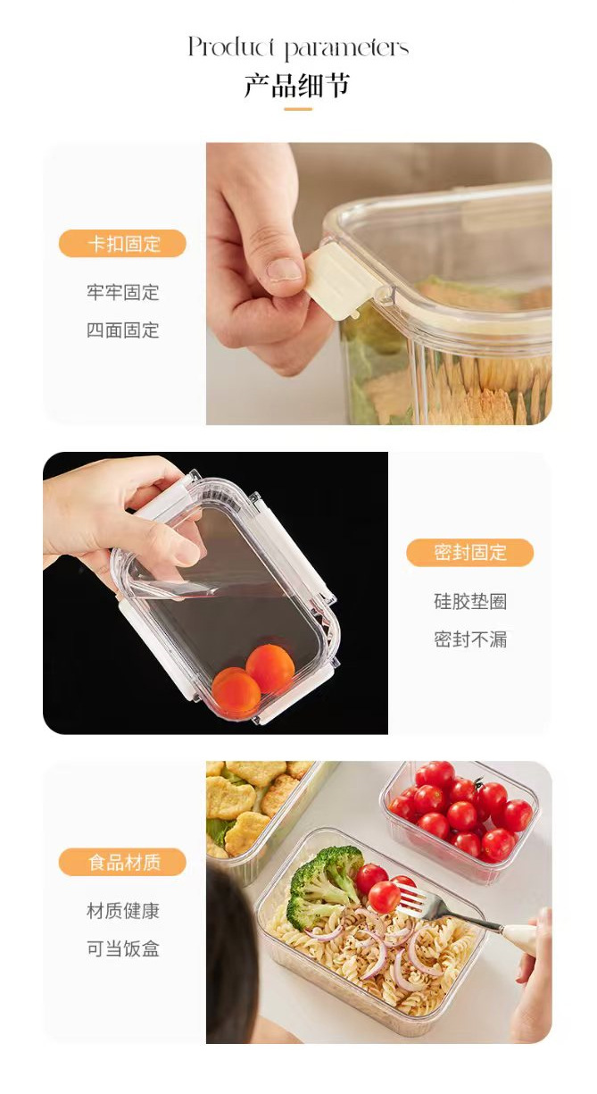 水切り保冷箱三点セット商用マイクロ波弁当箱カードボタン式厨房果物と野菜の雑穀密封収納缶