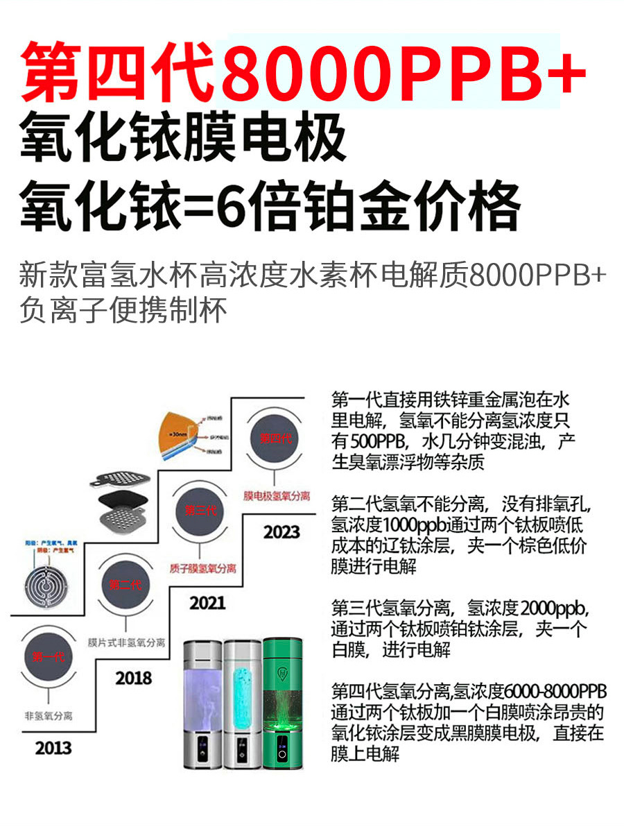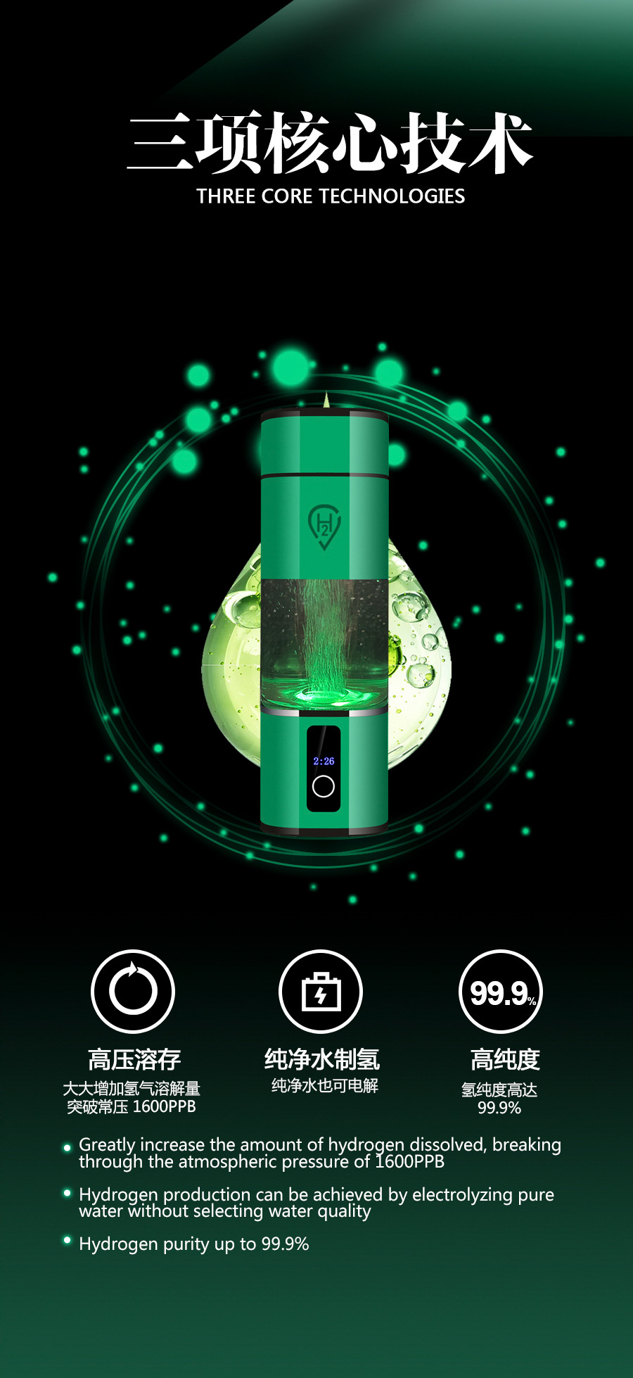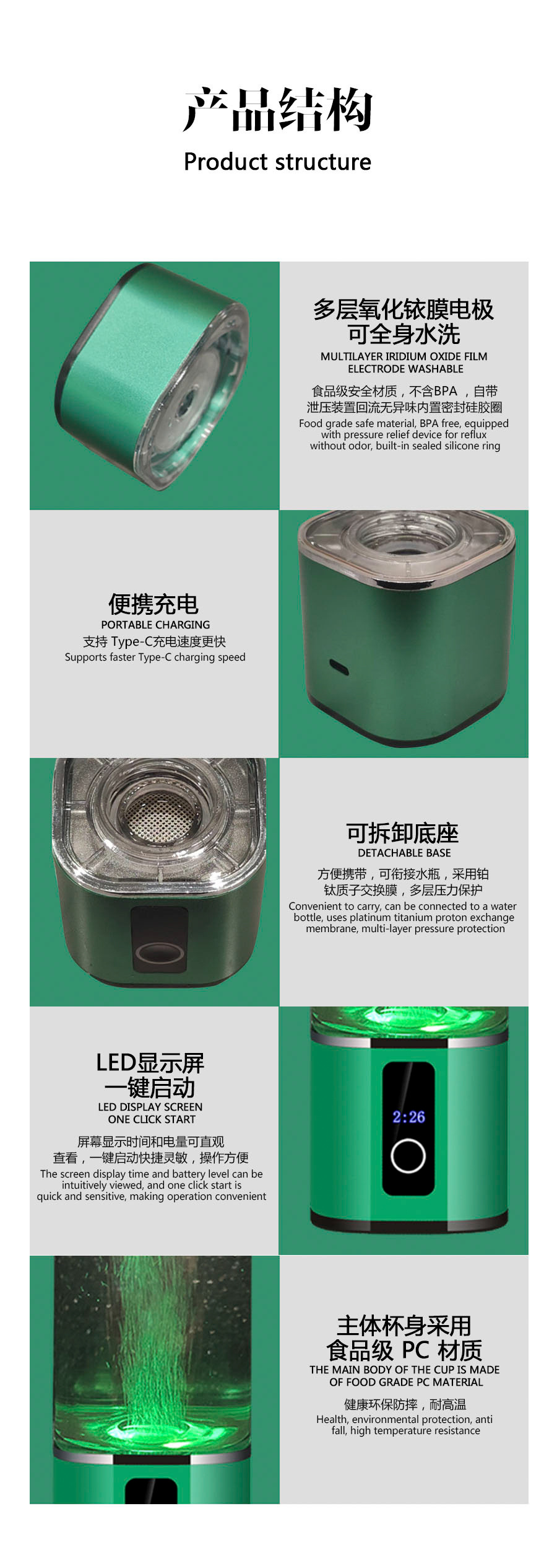 高颜值高浓度富氢水杯制氢水杯电解水素水杯养生氢氧分离富氢杯