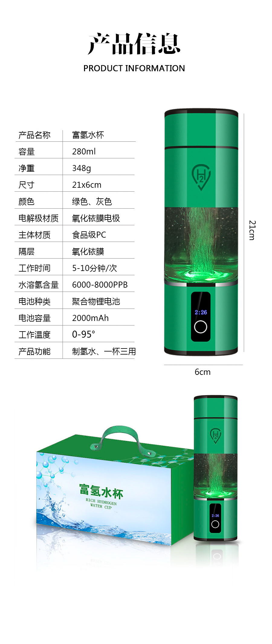 メーカーは高濃度水素水カップの水素酸素分離電解水素カップを供給しています。