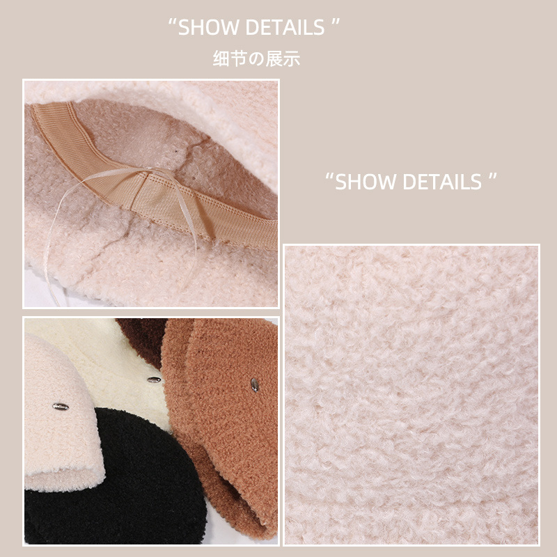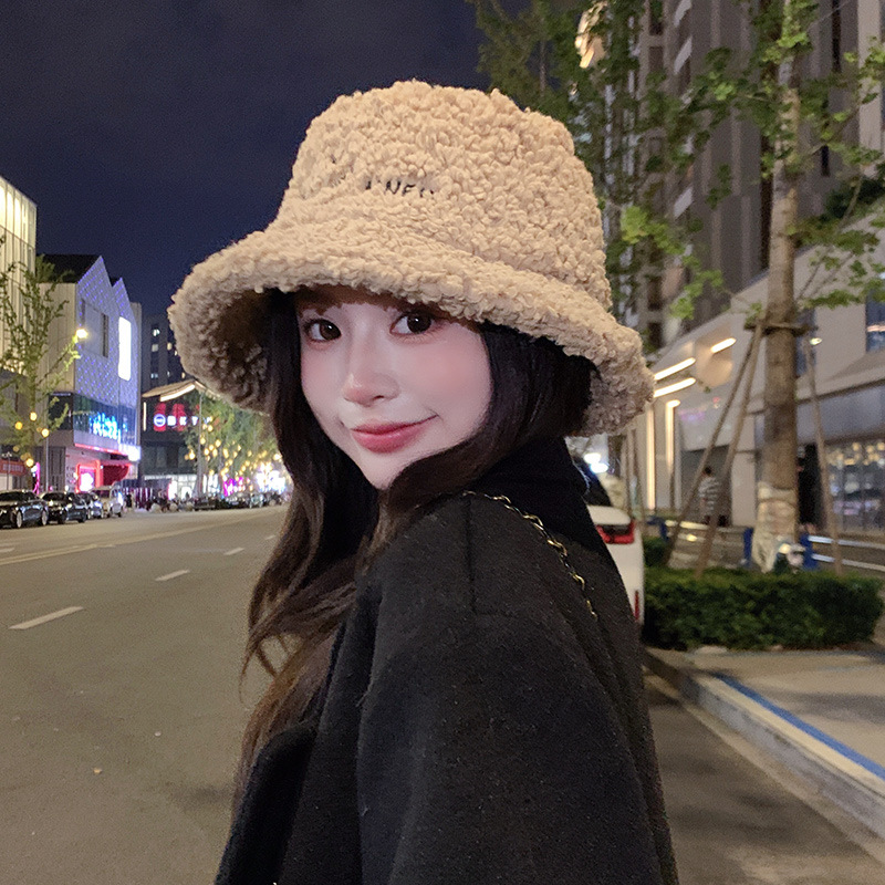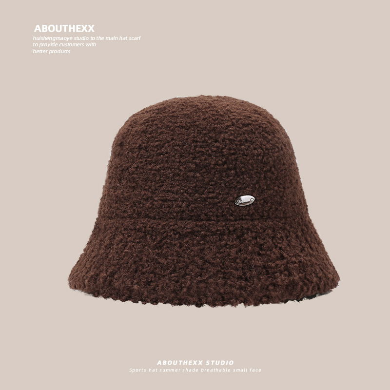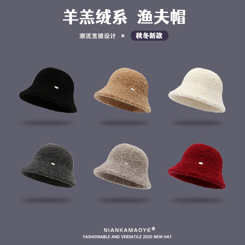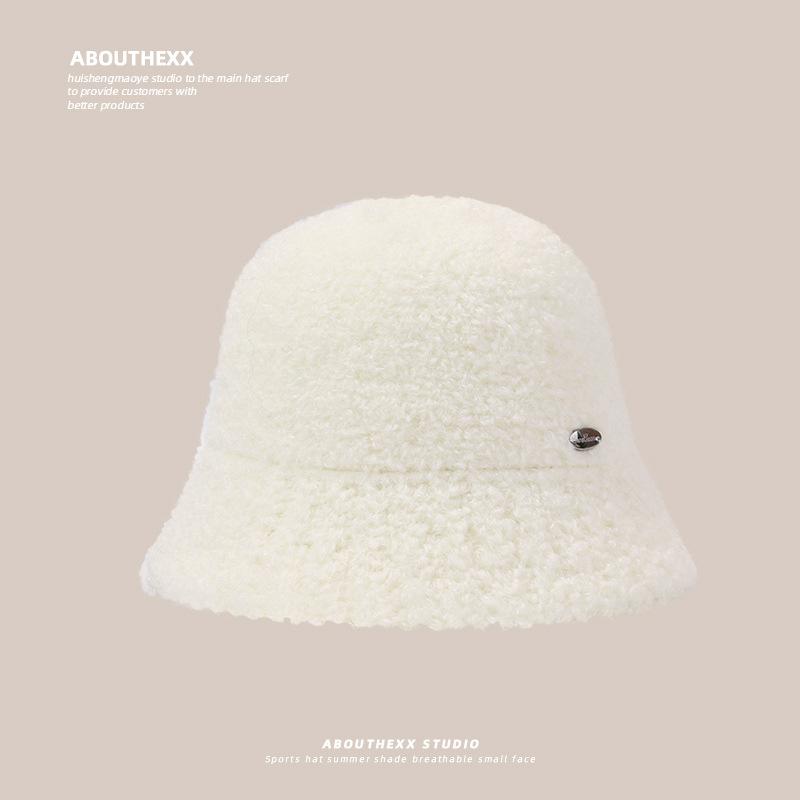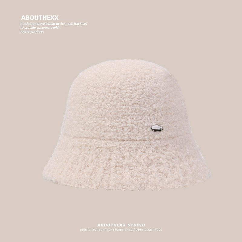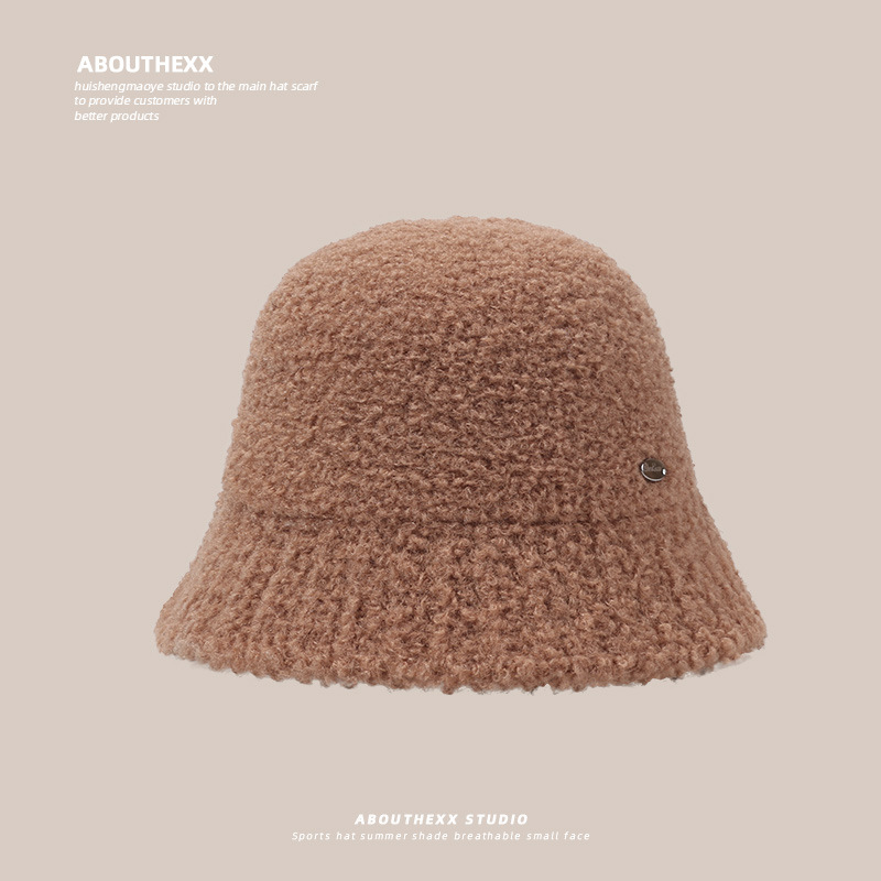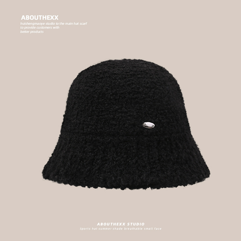 日系简约羊羔绒渔夫帽子女秋冬毛绒水桶帽纯色盆帽洋气时装帽潮