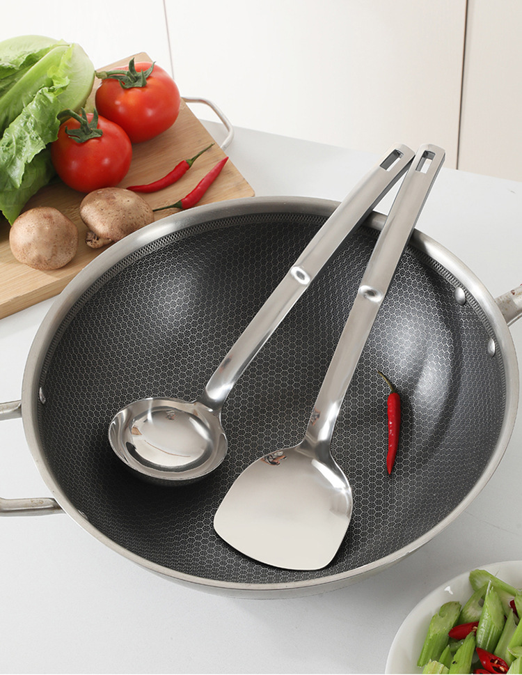 卸売厳選木製ハンドル家庭用スプーン大型ザルキッチン用品調理器具セット調理ステンレス鋼フライパンスパチュラ 304 スパチュラ