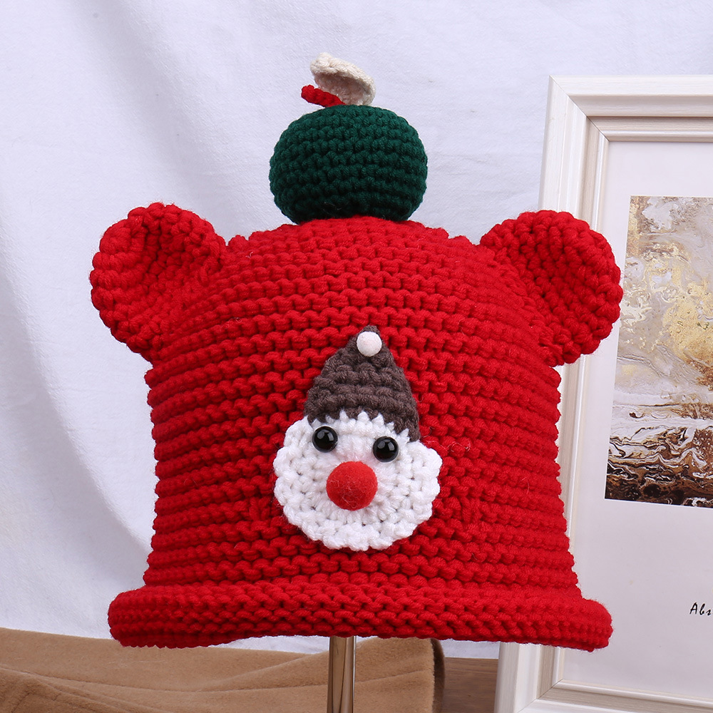 可爱新款时尚苹果耳朵刺绣装饰针织帽防风保暖舒适显脸小毛线帽