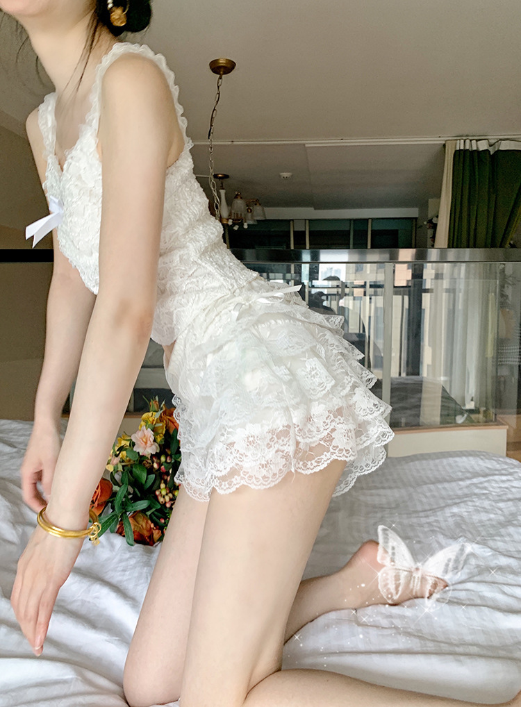 スカートの裏地の蓬蓬の底のズボンは光の白いレースのケーキのズボンの女性の夏の保険の半ズボンを防ぐことができます。