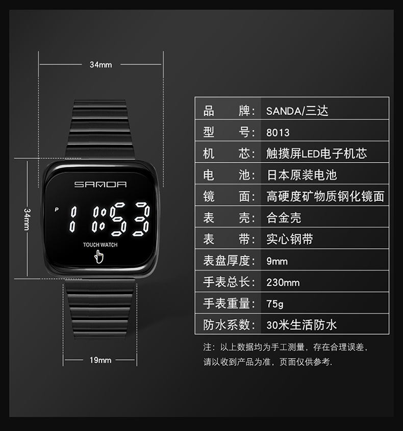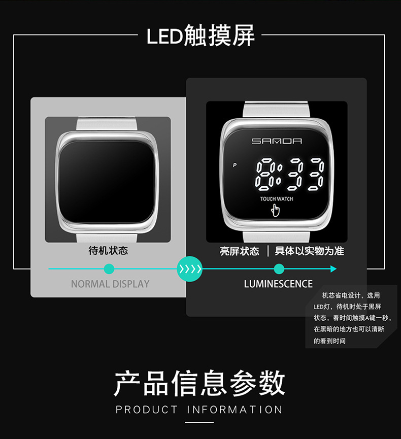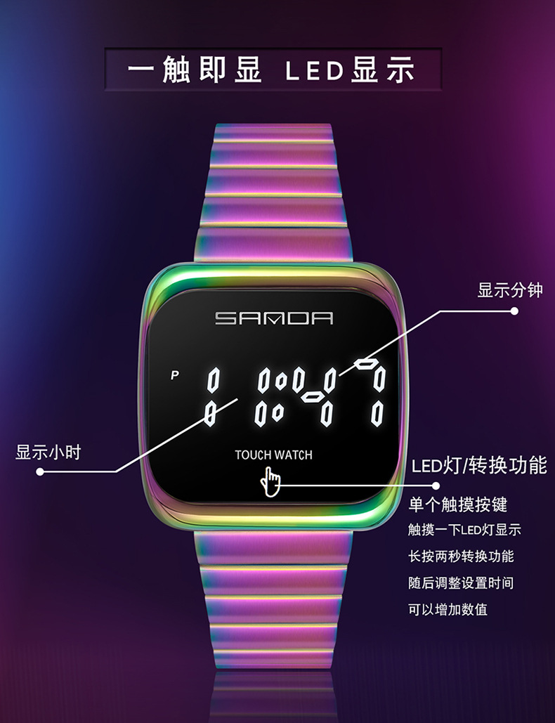 腕時計の男女の学生のタッチパネルの多種の機能の運動の電子時計の潮流のファッションの個性の夜光の防水の四角形
