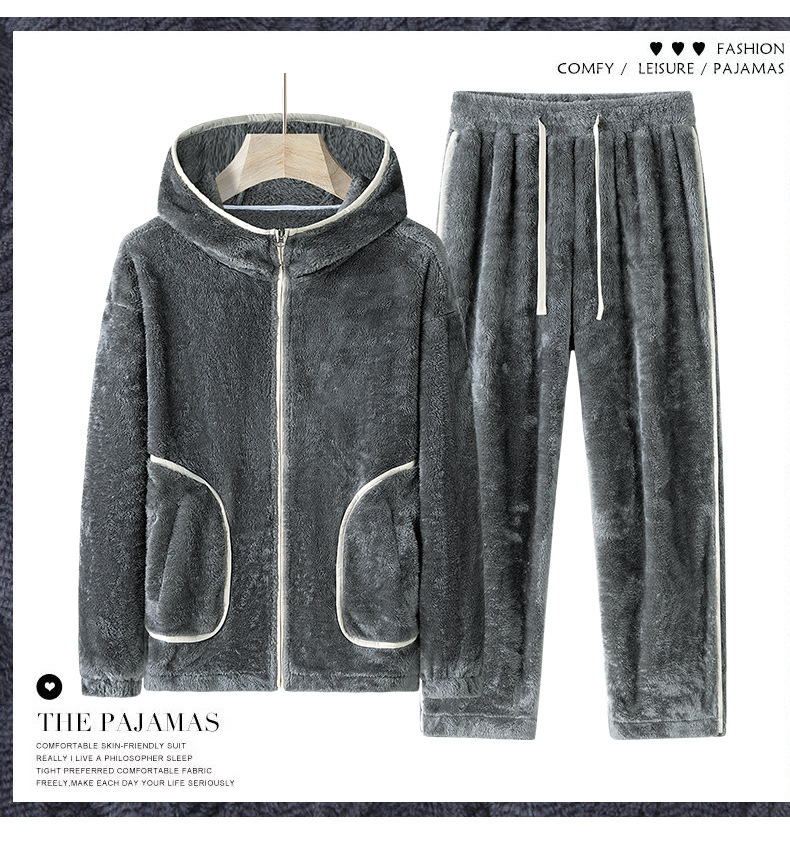 コーラルベルベットのパジャマ男性は冬にベルベットを厚くしたスーツ男性は冬に肥料を加えた家庭服を158元コントロールした