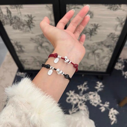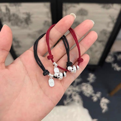 蛇年999足銀輸送本命年赤縄カップル純銀ブレスレット生肖蛇手縄プレゼント女